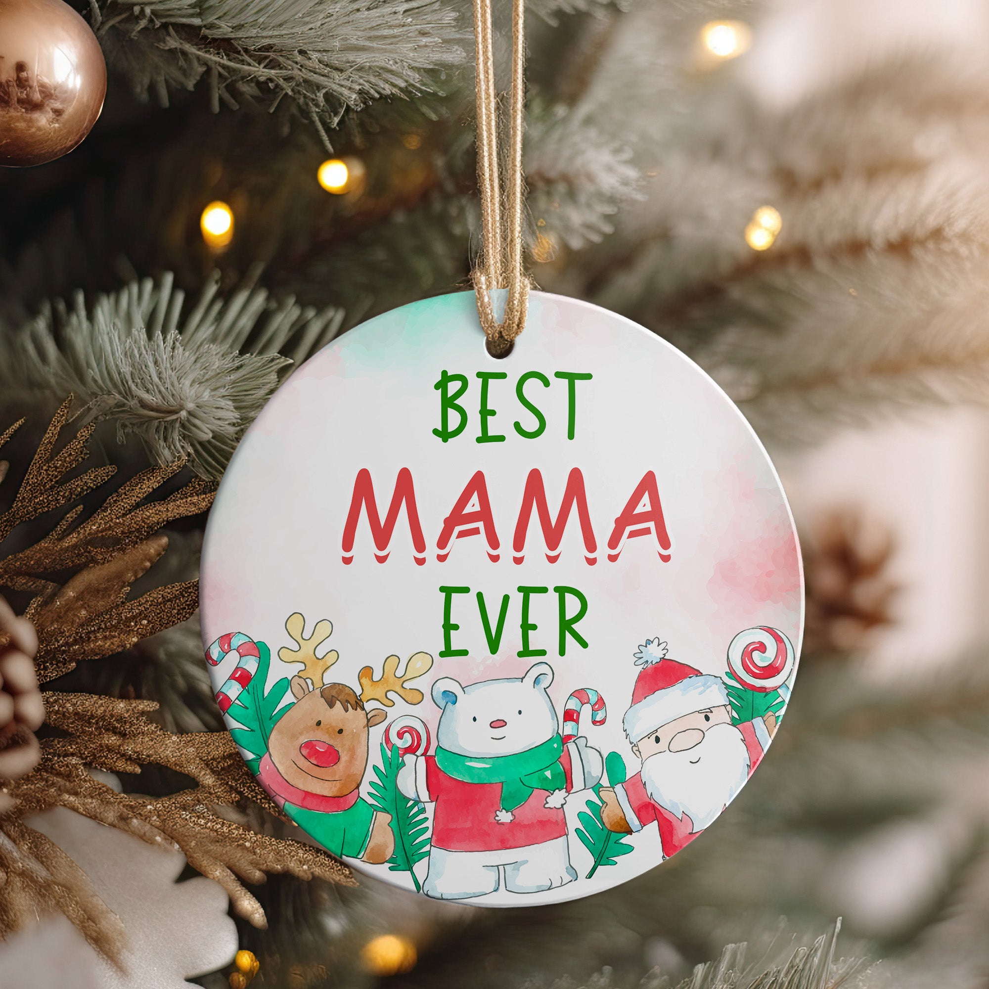 TAGS: personalized gift, ceramic ornament, best mama ever, Christmas decoration, holiday gift, custom ornament, Mother's Day gift, mom gift, holiday keepsake, festive decoration, handcrafted ornament, unique gift for mom, special occasion gift, family ornament, personalized Christmas decor