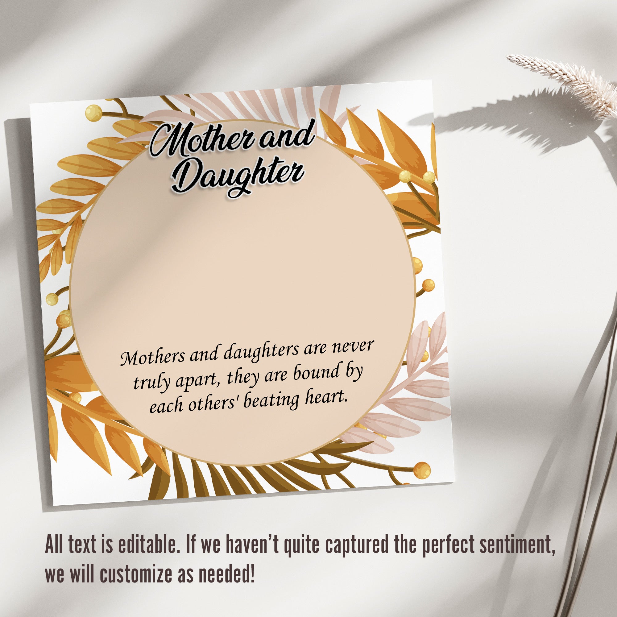 The design is elegantly presented in a beautiful gift box, artfully decorated with warm autumn hues and delicate foliage patterns. The card inside reads: "Mothers and daughters are never truly apart, they are bound by each others' beating heart." This sentiment enhances the emotional appeal, making it a perfect keepsake for birthdays, Mother’s Day, anniversaries, or just because.