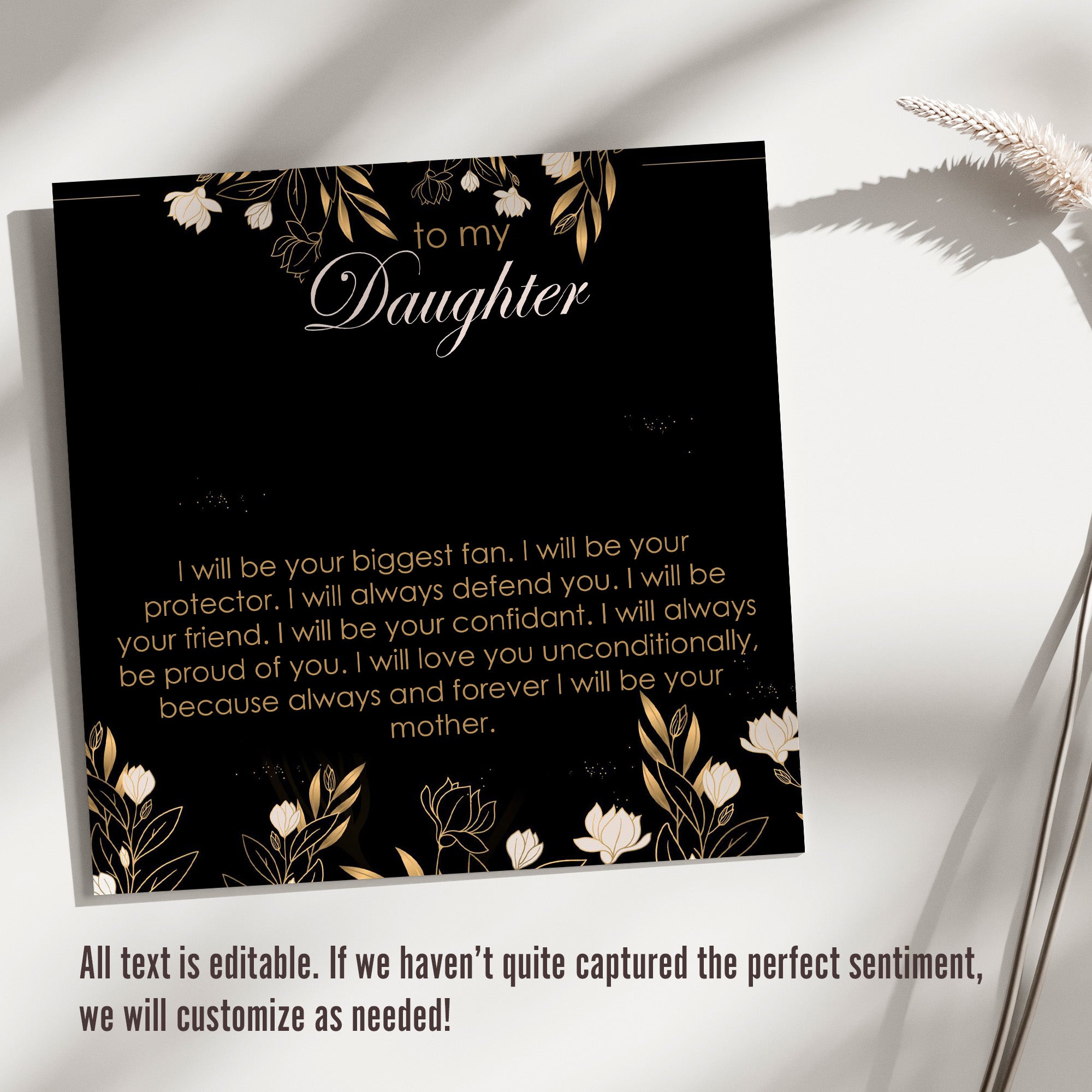 This gift is not just a piece of jewelry; it's a touching message of your unwavering love and support. The necklace and personalized card work together to tell the story of a mother's unconditional love. Let your daughter wear a piece of your heart, every day.