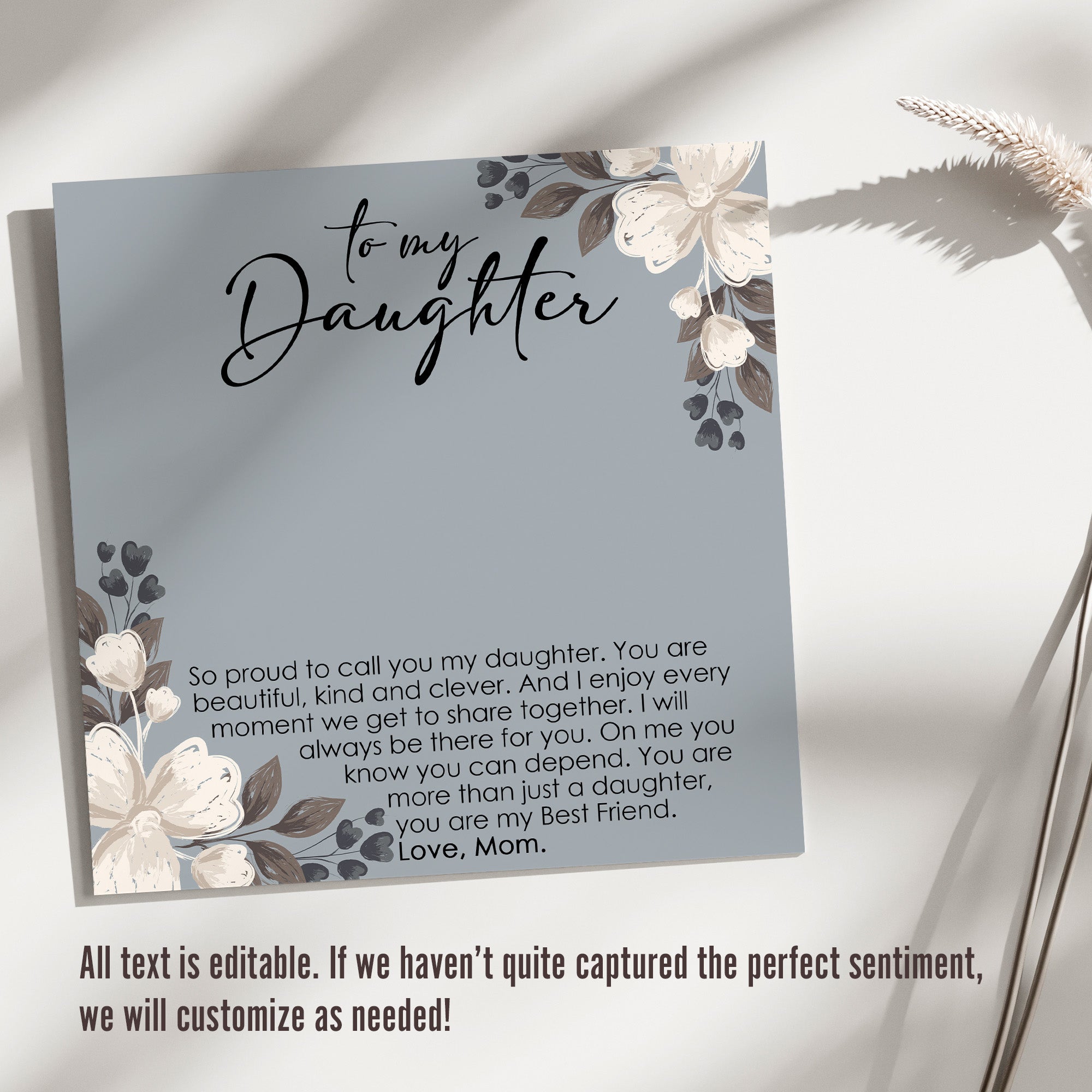 The included message card enhances the personalization of this gift, adorned with floral patterns in soft tones of ivory and brown. The heartfelt message, "To my Daughter," captures the depth of your feelings and the beautiful relationship you share. Want to add your own touch? Contact us for customization options to make it truly unique.