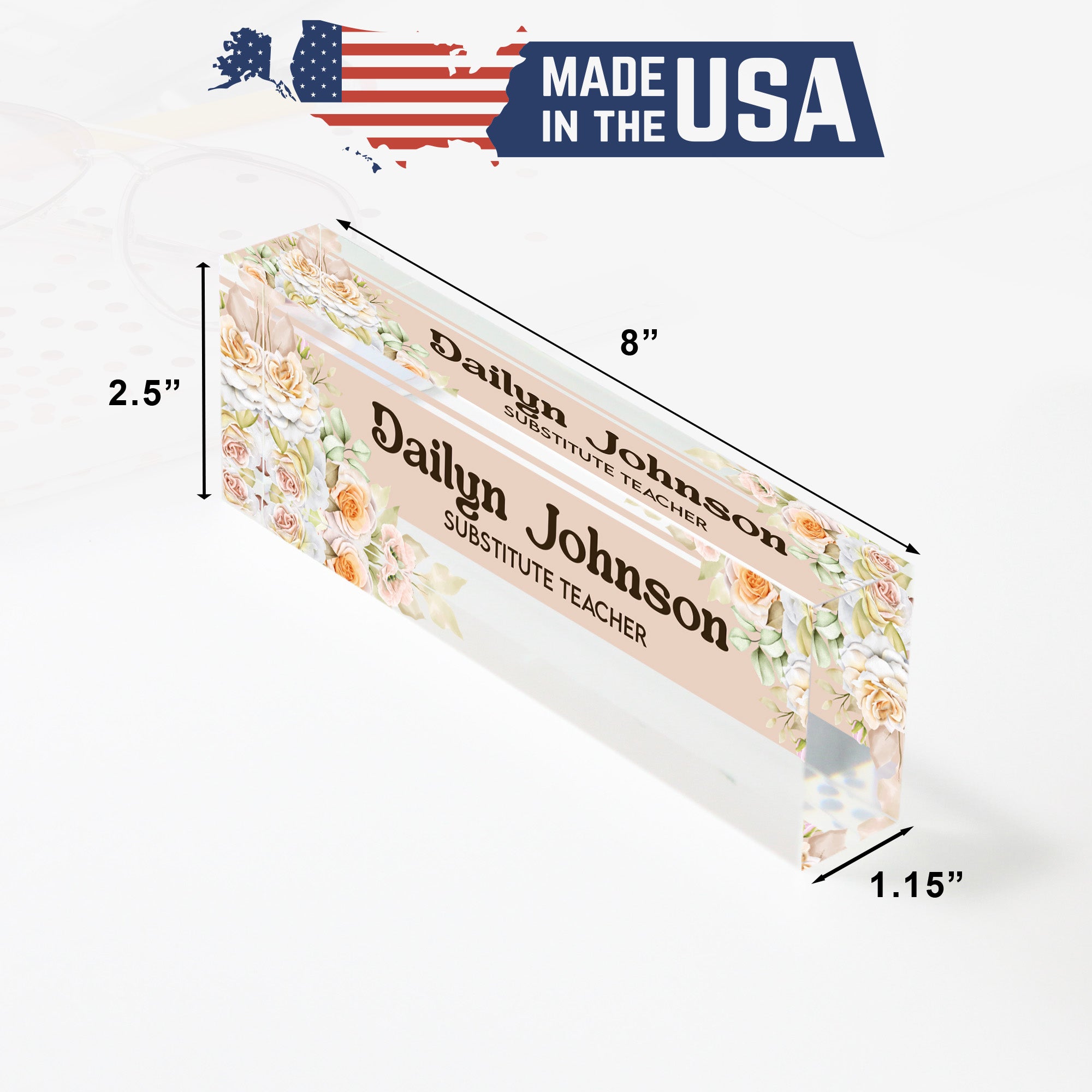 TAGS: personalized desk block, acrylic nameplate, teacher gift, office decor, customized gifts, floral design, name block, substitute teacher gift, custom nameplate, graduation gift, boss gift, handmade desk accessory, office name sign, employee appreciation, unique gifts