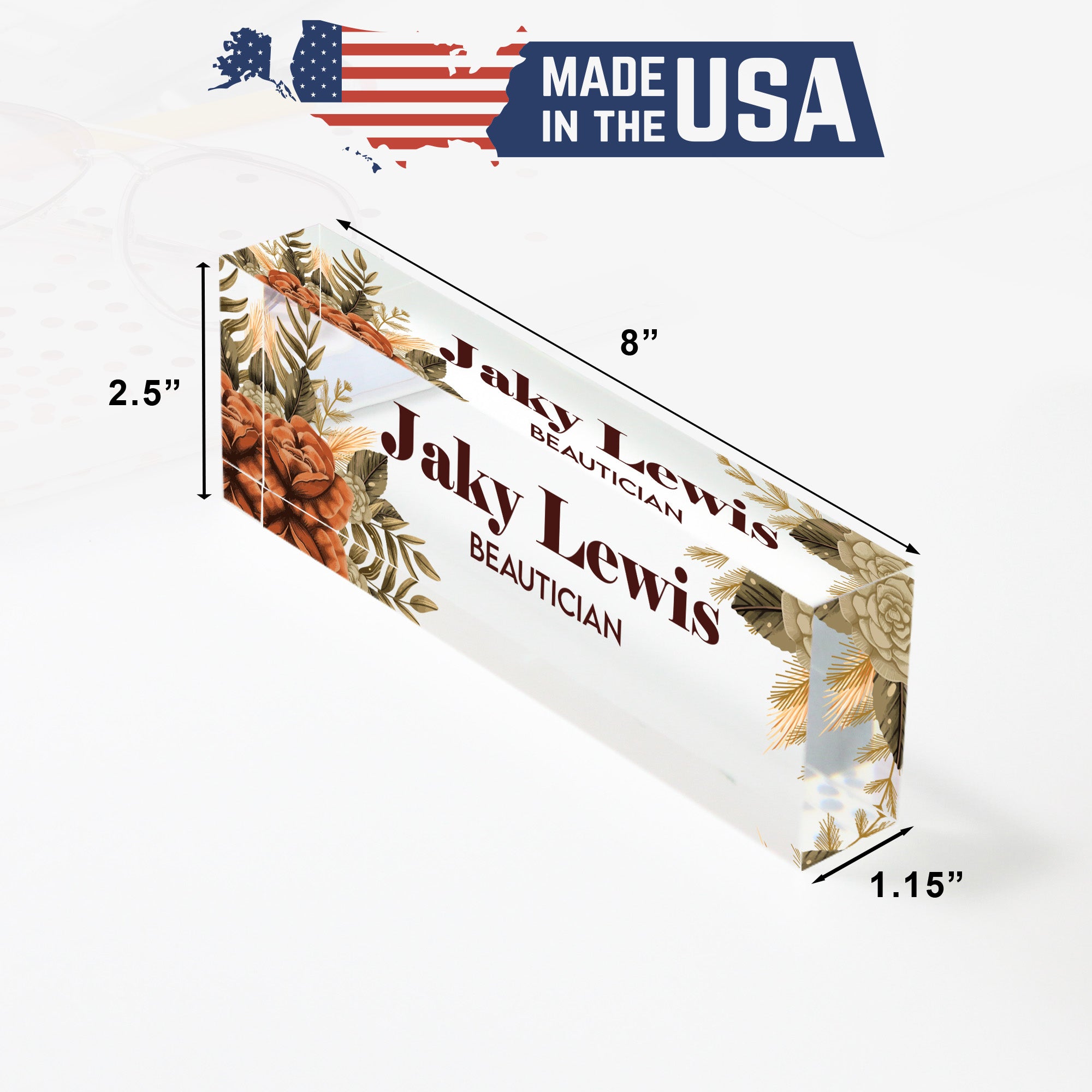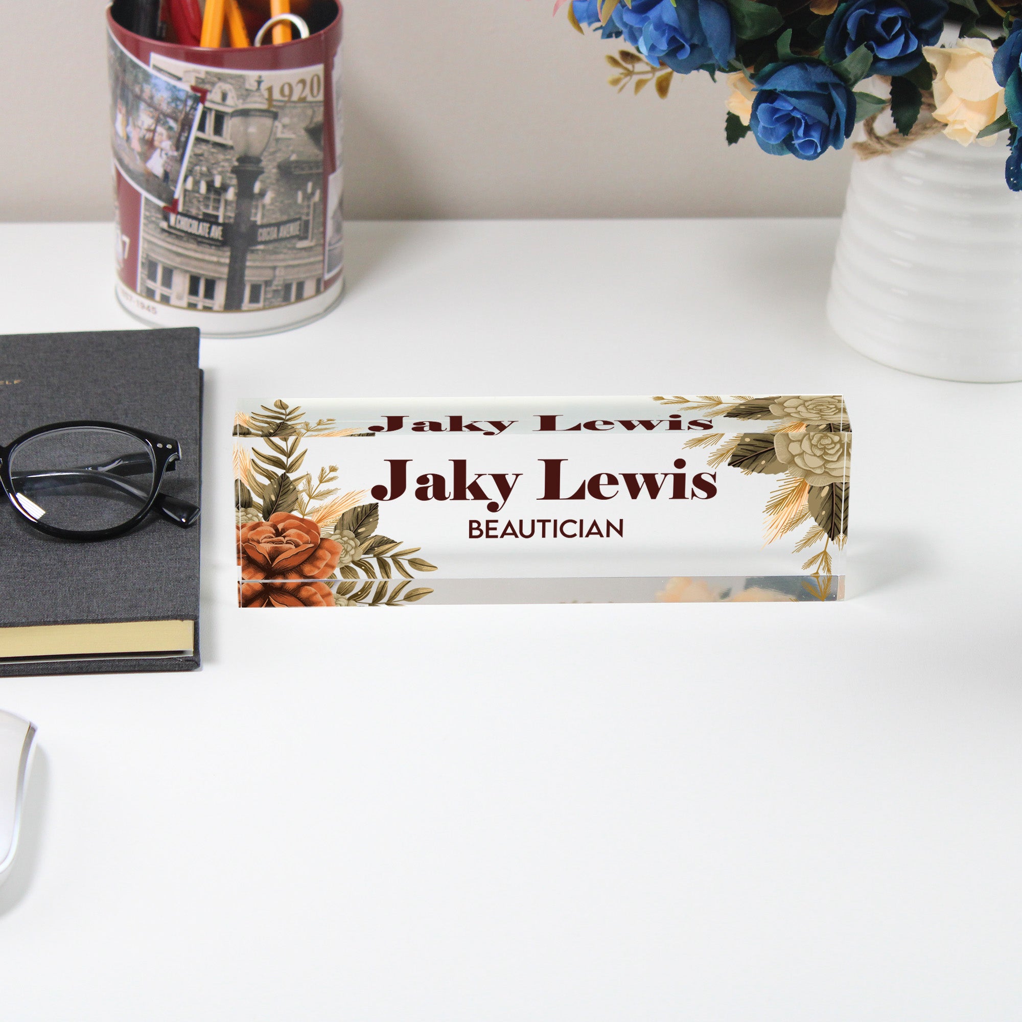 **TAGS:** personalized name plate, acrylic desk block, custom desk decor, beautician gift, handmade office gift, floral design, professional name plate, desk accessory, custom gift, mom gift, sister gift, coworker gift, gift for her, office decor, custom name plate
