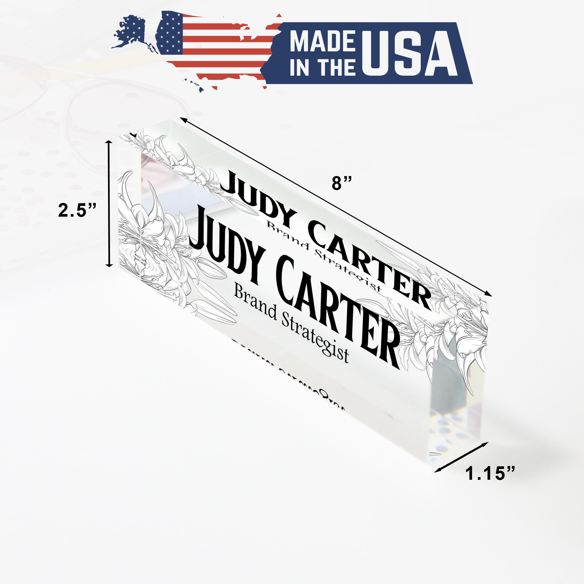 TAGS: personalized desk block, custom name plate, acrylic office decor, brand strategist gift, professional desk accessory, business milestone gift, custom office gift, handmade desk decor, elegant desk block, modern office accessory, gift for colleague, corporate gift, promotion gift, floral acrylic block, unique desk accessory