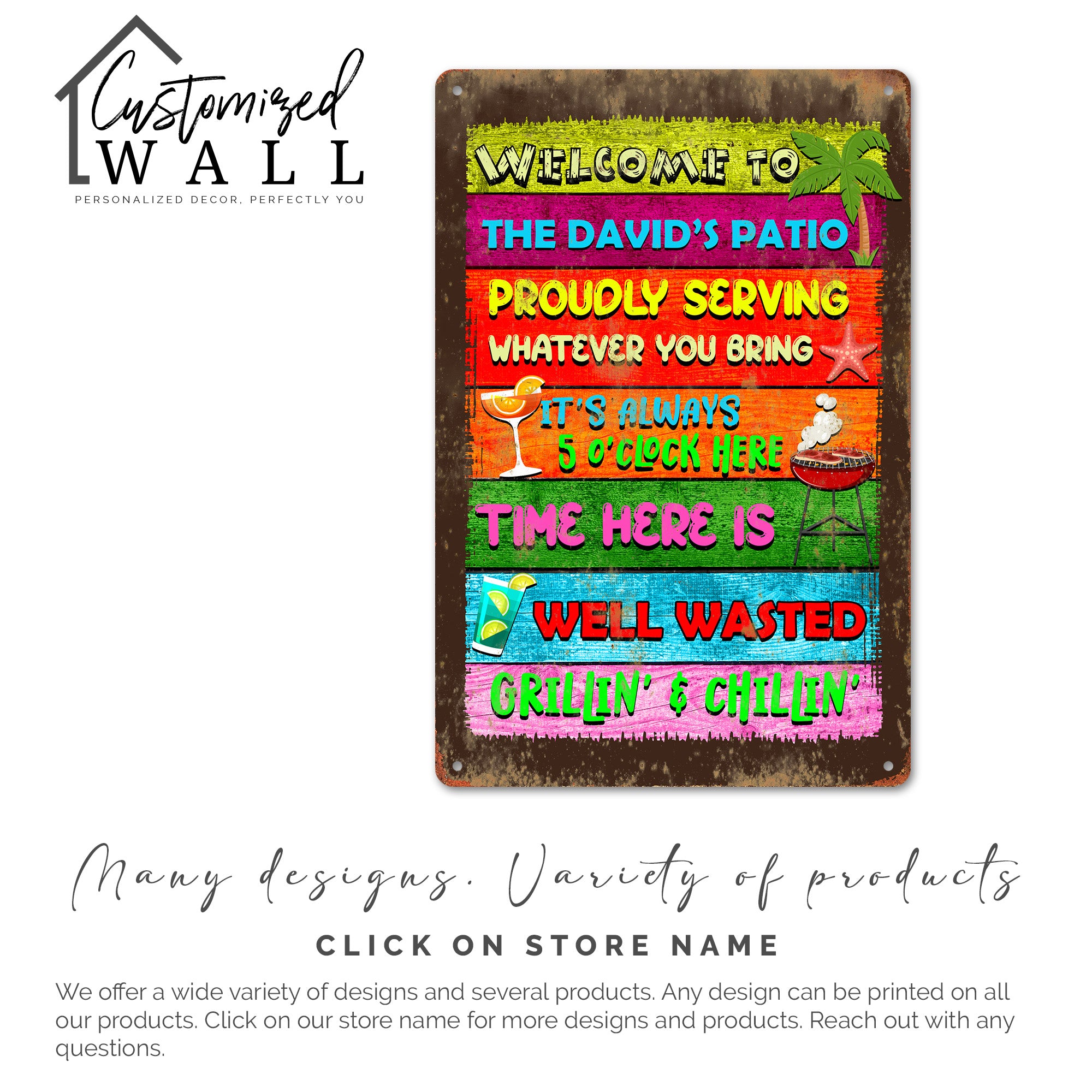 TAGS: personalized metal sign, custom patio decor, outdoor decor, grilling gifts, chilling signs, backyard decoration, name sign, vibrant signage, customized gift, summer patio sign, gift for dad, gift for him, housewarming gift, rustic metal sign, handmade décor