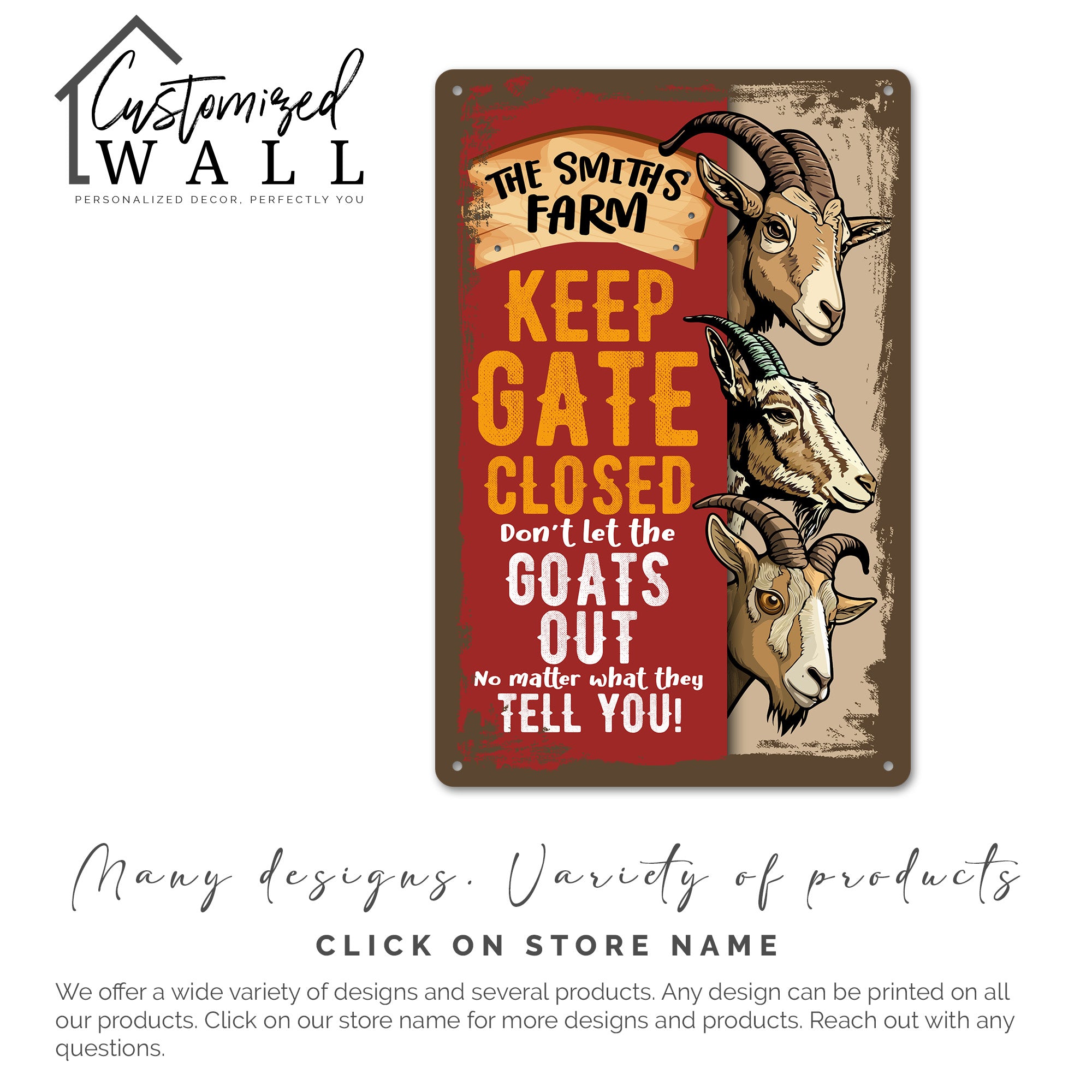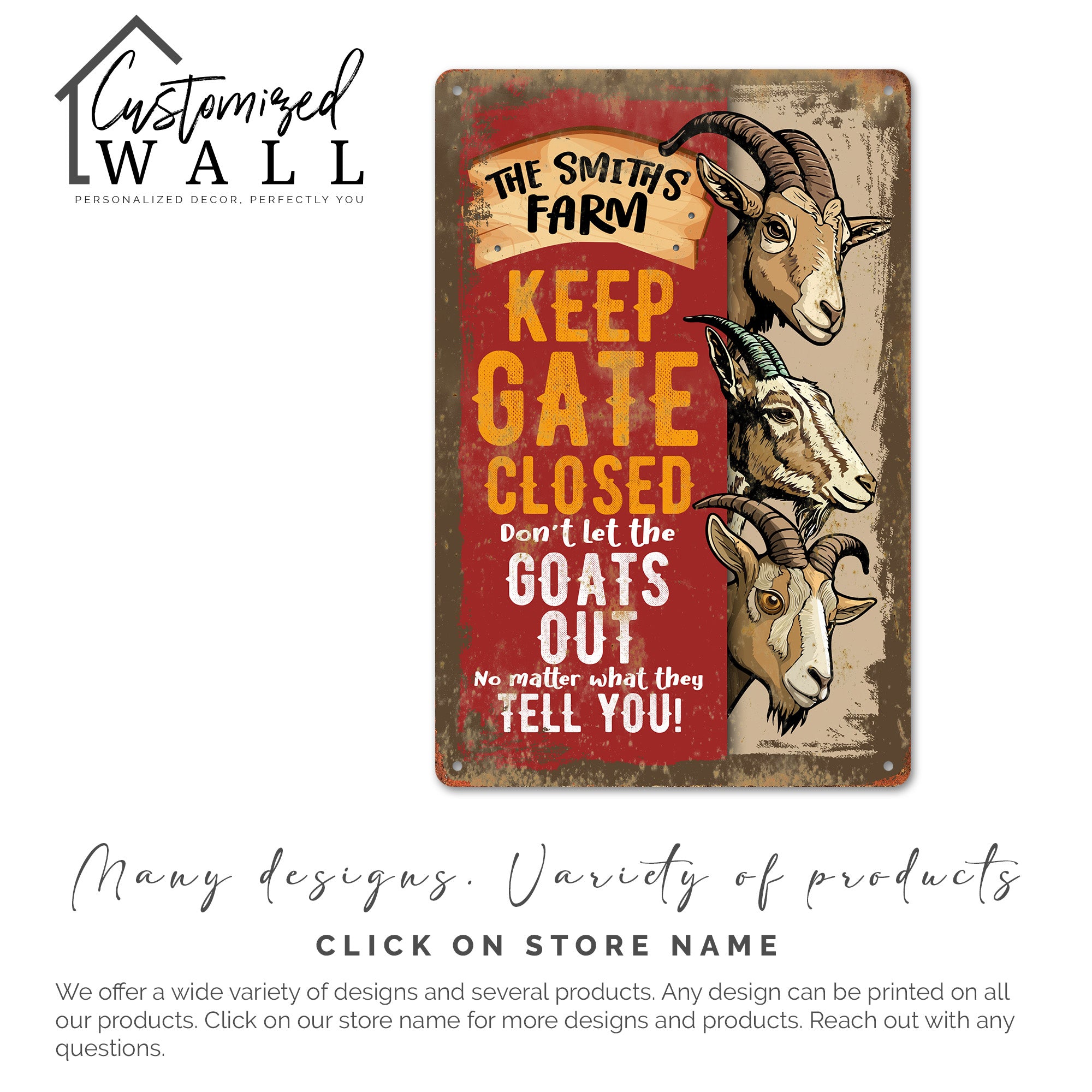 TAGS: personalized sign, farm decor, goat sign, custom metal sign, rustic decor, farmhouse gift, outdoor sign, indoor sign, family name sign, humorous sign, gift for mom, gift for dad, animal lover gift, garden decor, housewarming gift