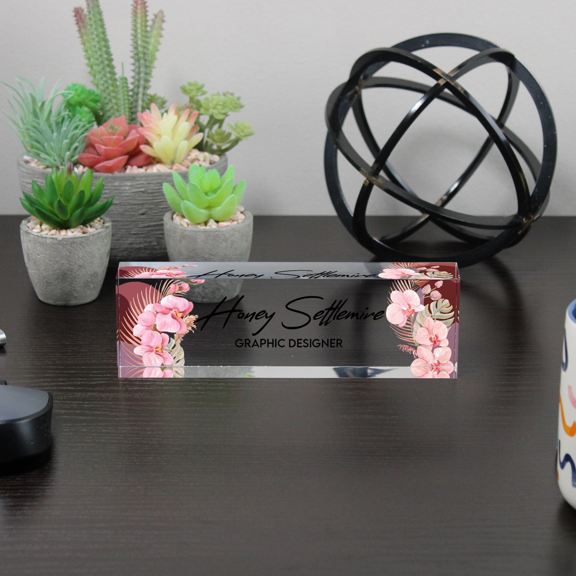 TAGS: personalized desk block, acrylic nameplate, floral design, graphic designer gift, custom office decor, handmade desk accessory, personalized office gift, gift for mom, sister gift, coworker gift, professional nameplate, stylish office accessory, elegant desk decor, unique employee gift, handmade with love