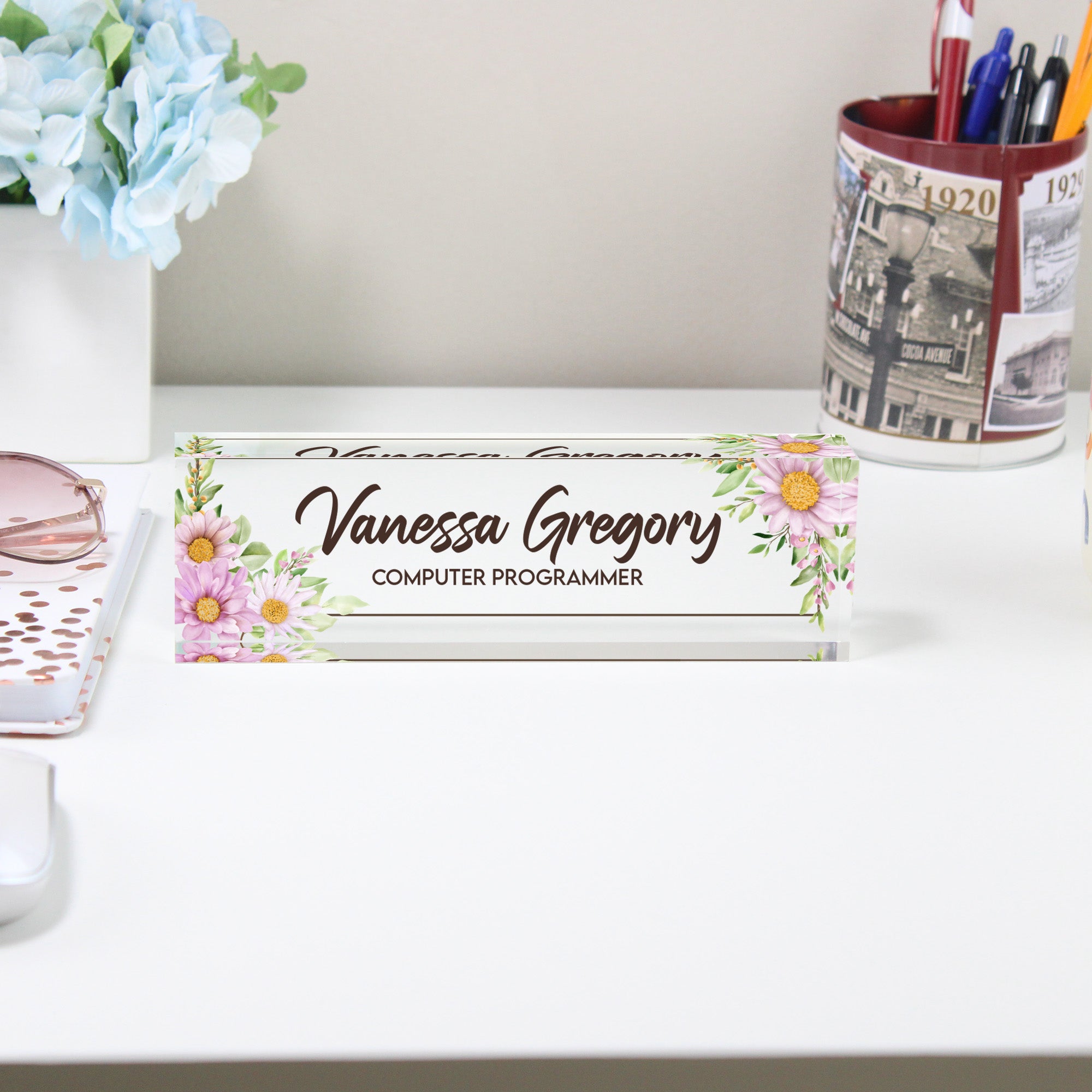 TAGS: personalized nameplate, acrylic desk block, custom name sign, floral office decor, programmer gift, handmade desk accessory, personalized office gift, professional nameplate, custom desk name sign, acrylic name block, gift for her, office decor for women, floral acrylic decor, gift for mom, gift for sister