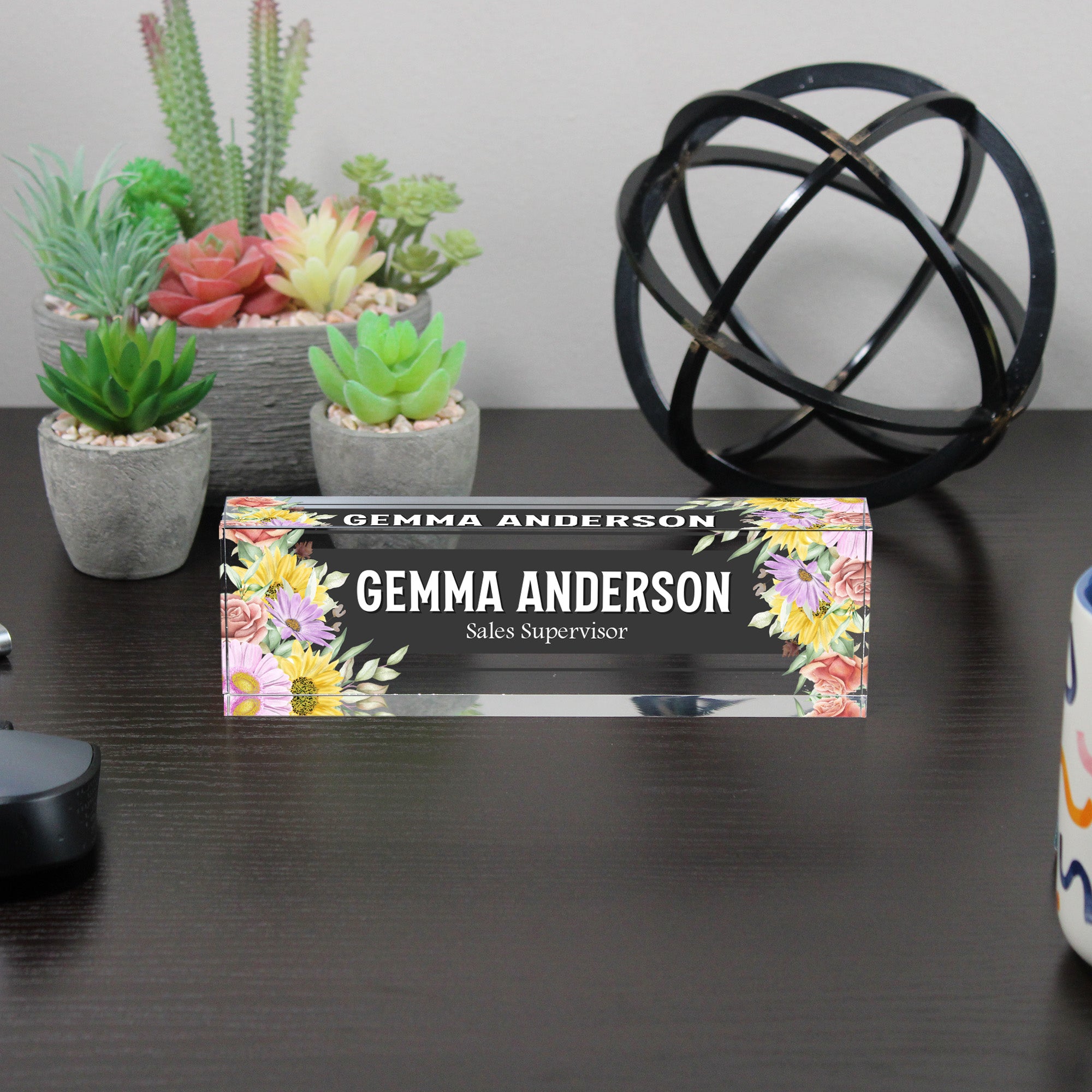 TAGS: personalized desk block, acrylic name plate, floral office decor, custom office gift, sales supervisor gift, unique desk accessory, personalized gift, floral name plaque, office decor, handcrafted, custom name display, employee recognition, birthday gift, promotion gift, desk organizer