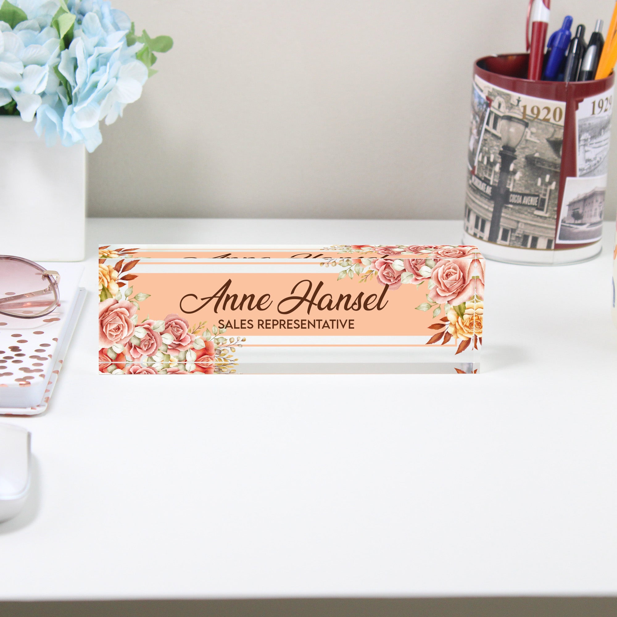 TAGS: personalized desk name plate, floral office decor, acrylic name block, customized office gift, sales representative gift, office decor for her, handmade desk accessories, custom nameplate, office desk decor, unique professional gift, graduation gift, employee appreciation gift, personalized business gifts, custom office supplies, motivational desk sign