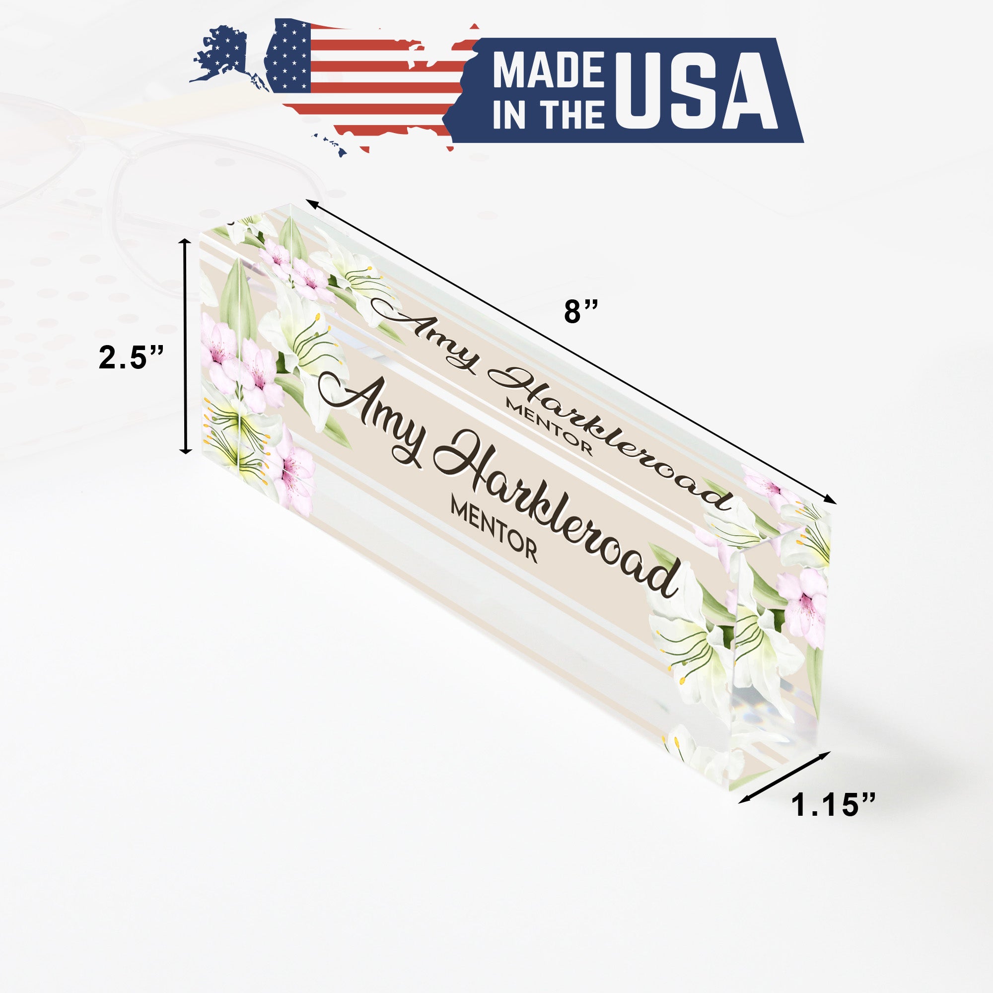 TAGS: personalized gift, mentor gift, acrylic name plate, desk decor, handmade desk accessory, custom nameplate, floral design, elegant office decor, gift for mom, gift for sister, professional recognition, teacher appreciation, custom engraving, office personalization, unique desk accessory