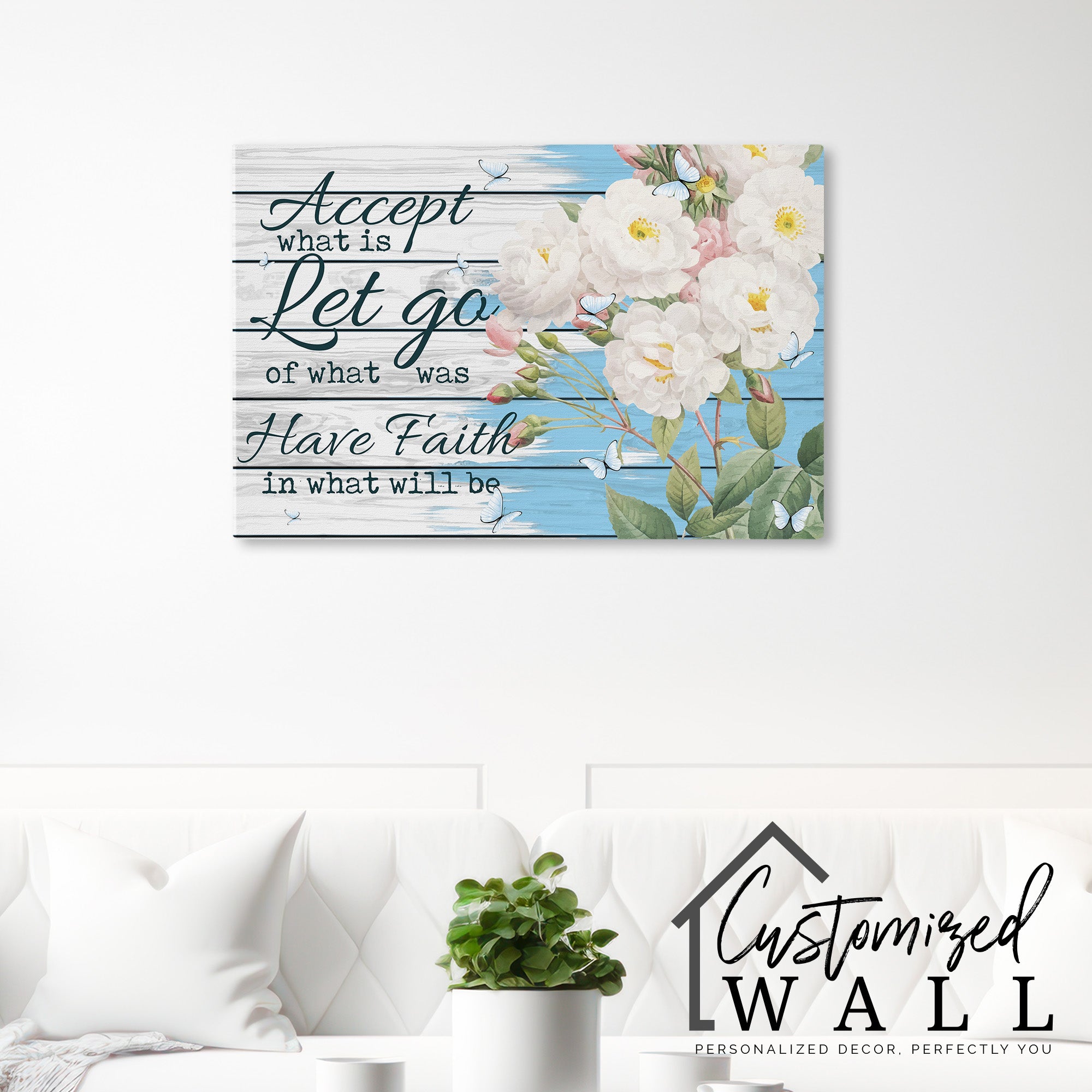 Enhance your living space with our beautifully designed Personalized Floral Wrapped Canvas Art, featuring the inspirational message: "Accept what is, let go of what was, have faith in what will be." This piece is perfect for adding a touch of elegance and positivity to any room.