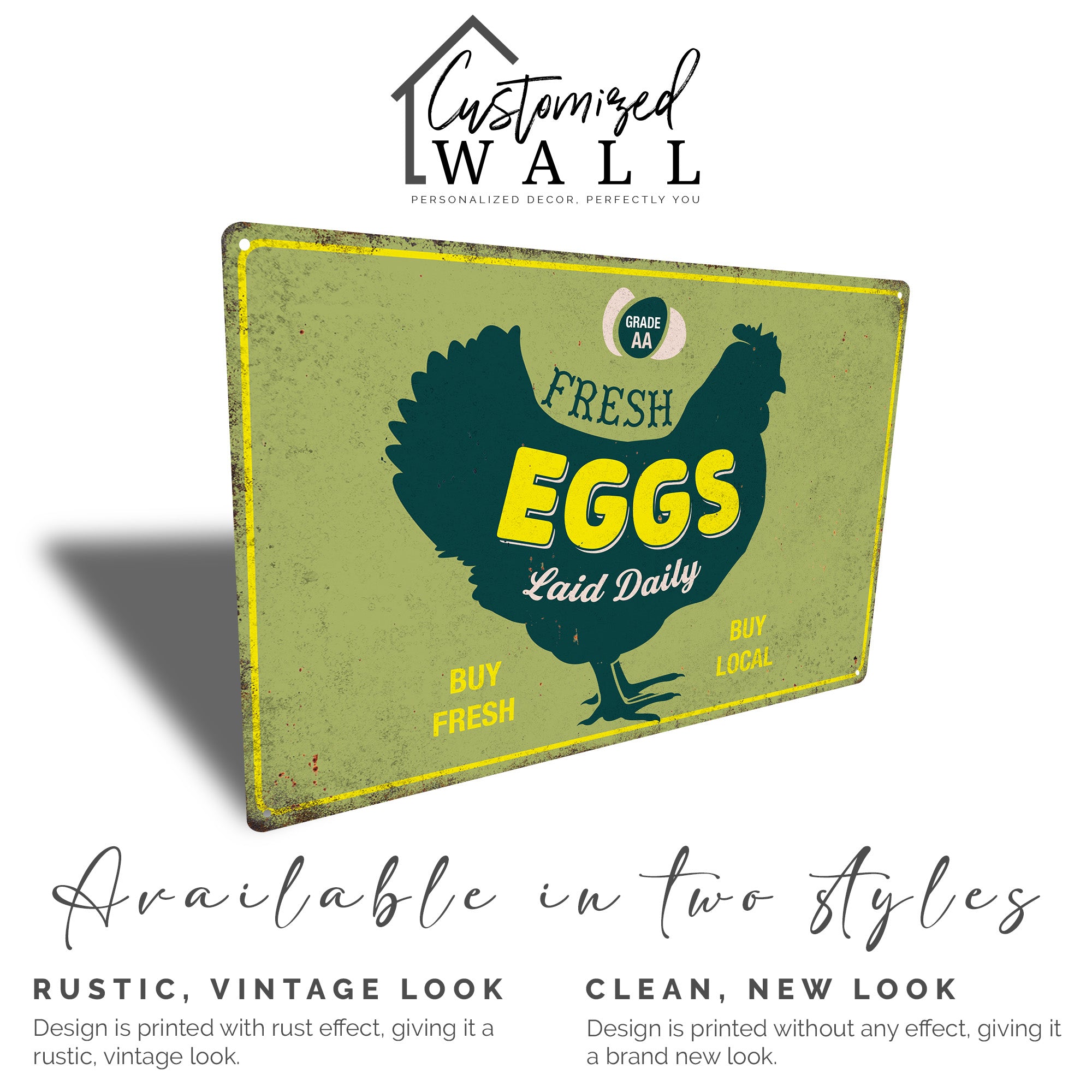 TAGS: personalized sign, farmhouse decor, metal sign, kitchen decor, handmade home decor, rustic design, chicken sign, gift for her, home cooks gift, kitchen gift, farm animals, fresh eggs, rural living, cottage kitchen, vintage-inspired decor