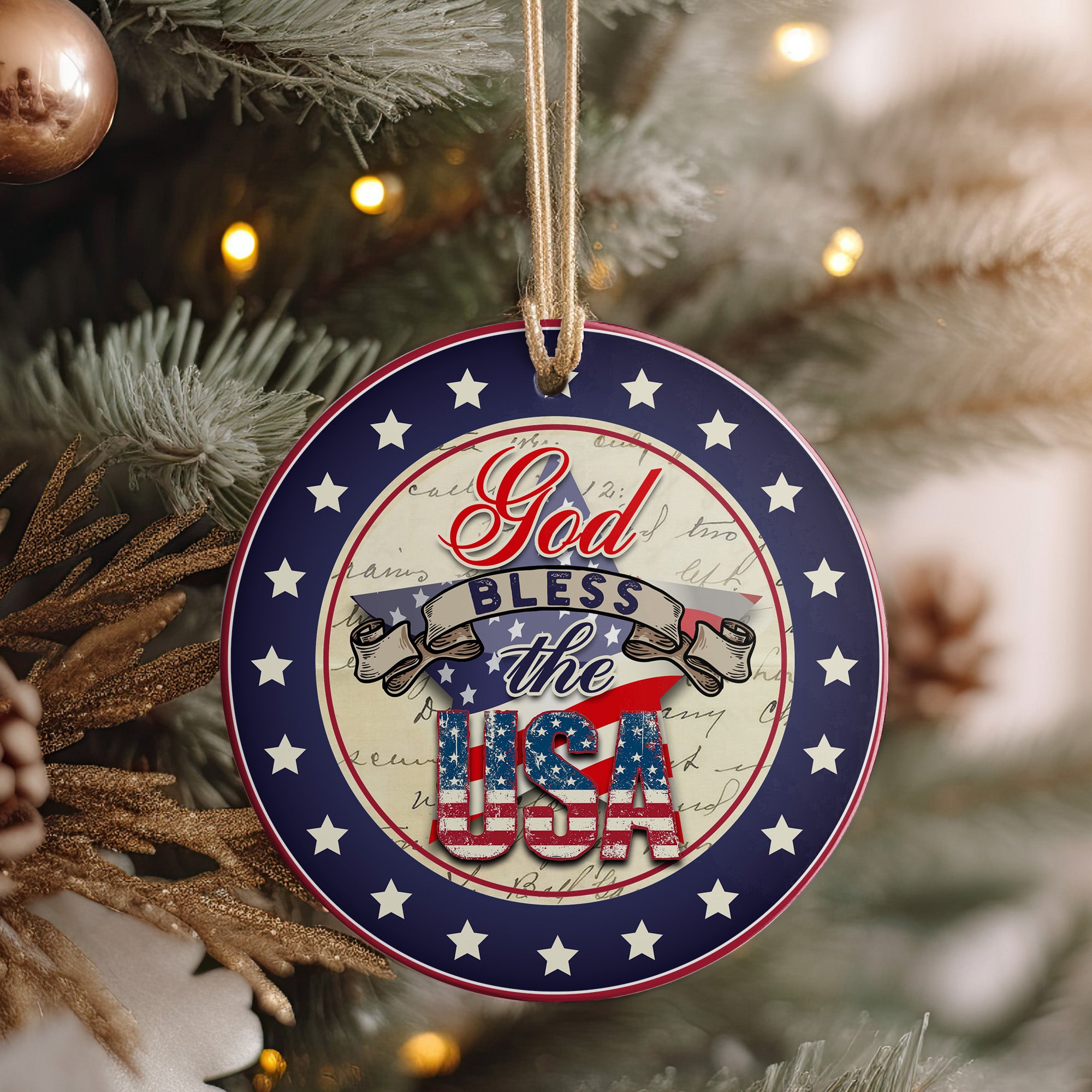 TAGS: patriotic ornament, USA ornament, personalized ceramic, Christmas gift, American pride, handmade ornament, gift for mom, gift for dad, home decor, gift for sister, gift for brother, custom ornament, USA gift, God Bless the USA, personalized gift