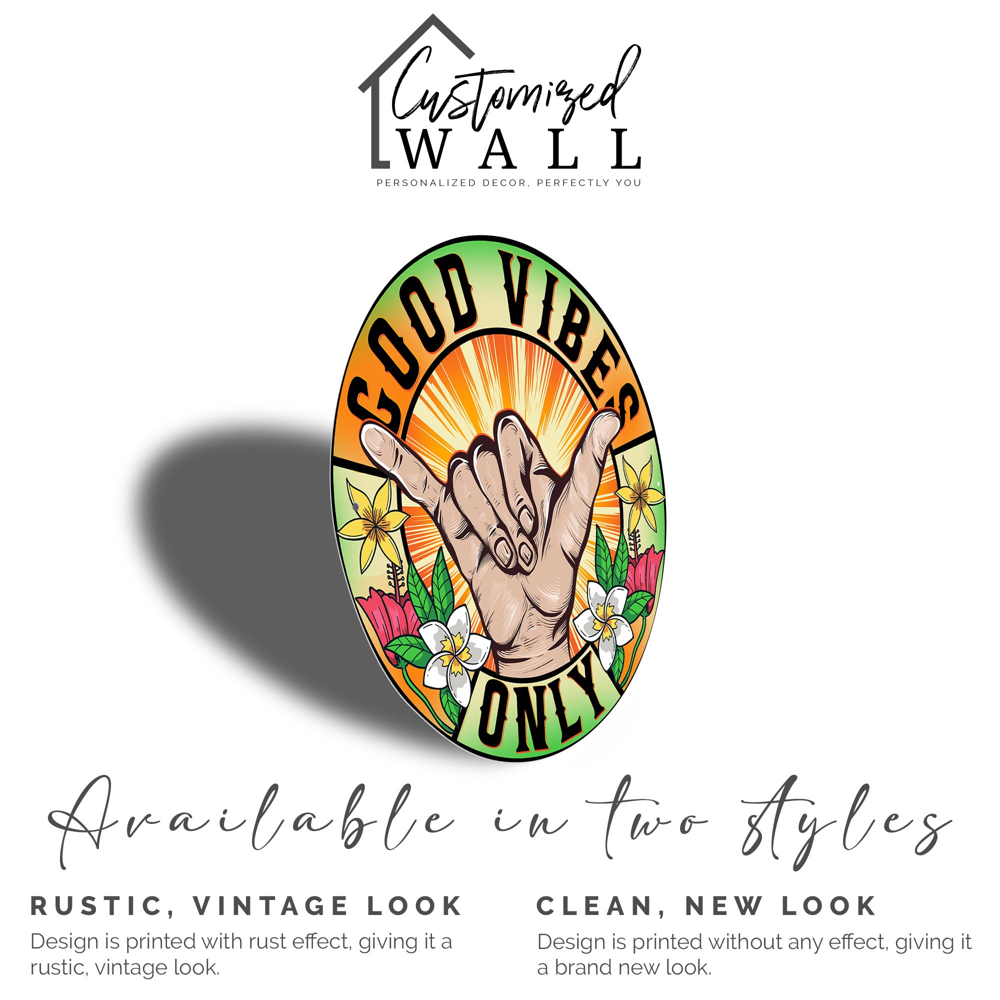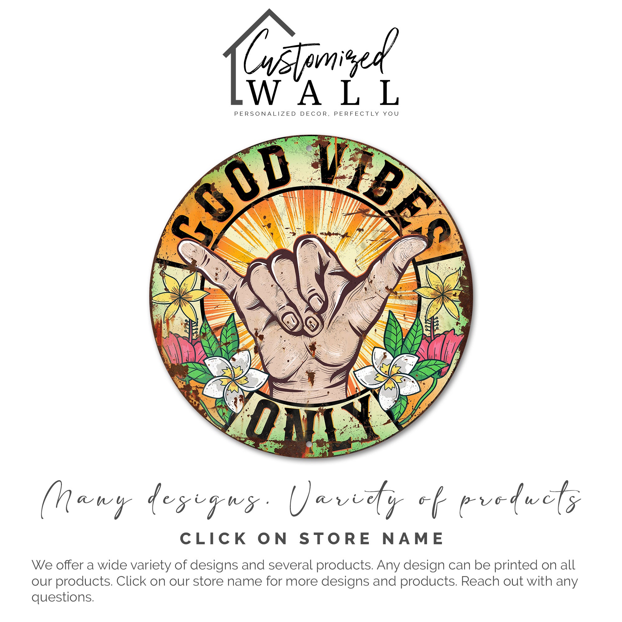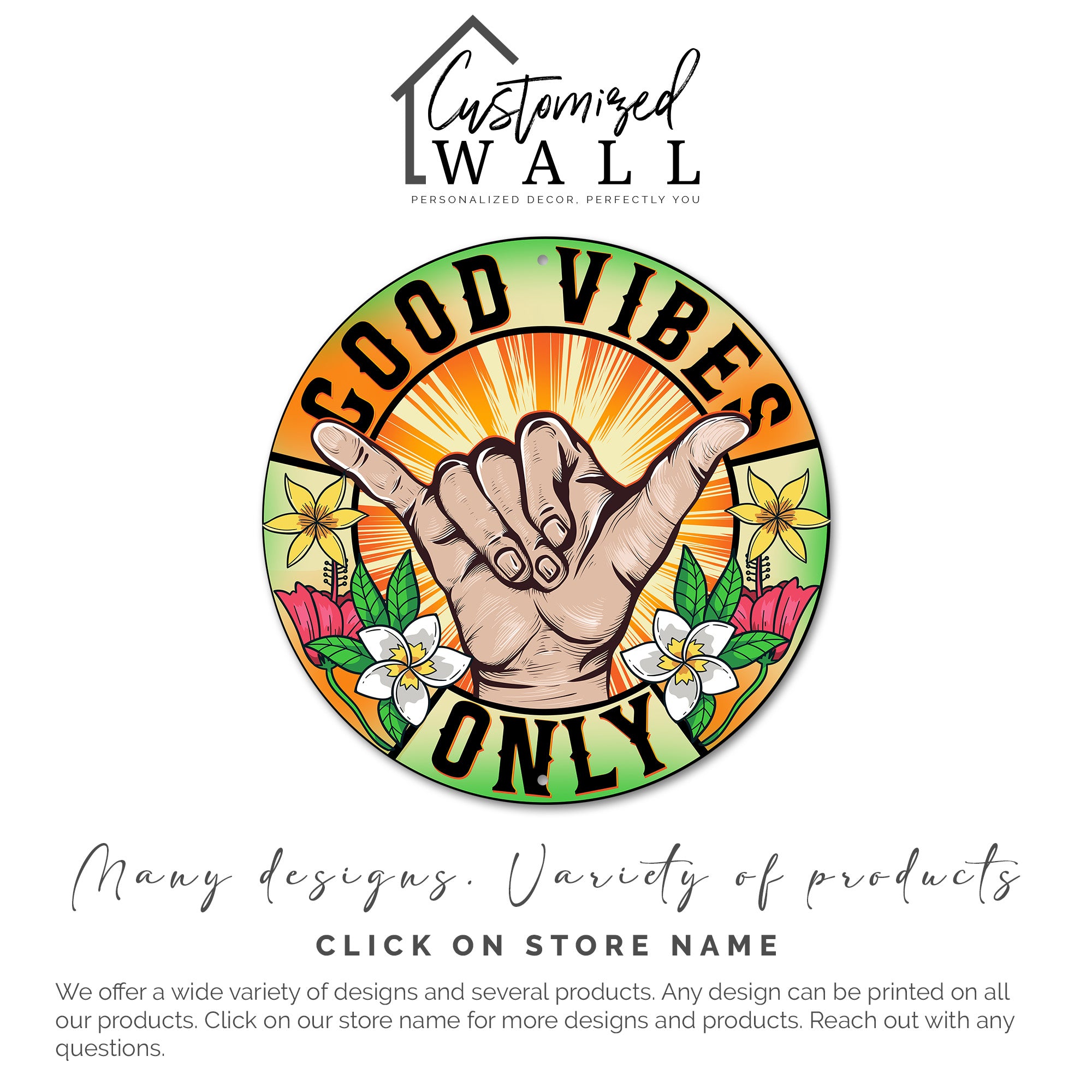 TAGS: personalized metal sign, good vibes only, custom wall art, handmade decor, tropical decor, shaka sign decor, home gift, birthday gift, unique wall art, vibrant metal sign, boho chic, artistic metal sign, floral metal decor, handcrafted home decor, personalized gifts