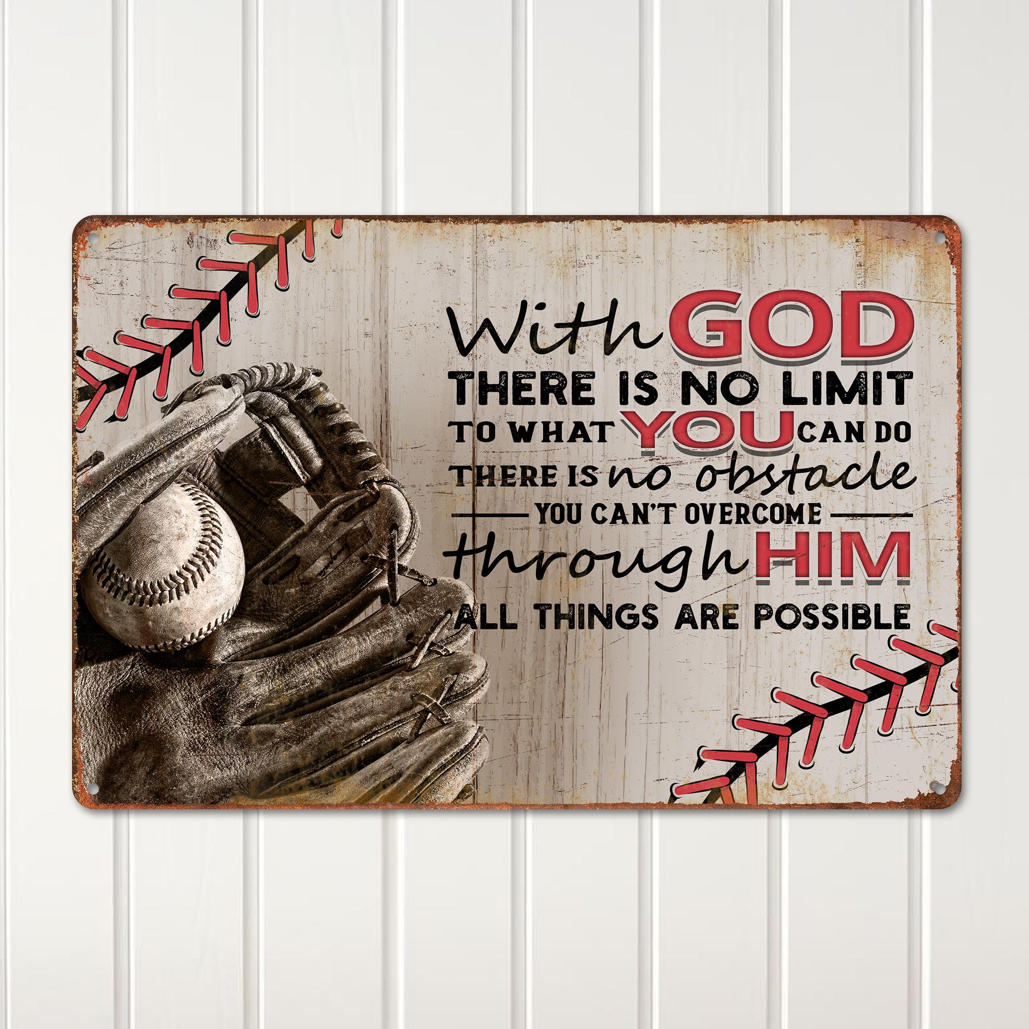 TAGS: inspirational sign, personalized metal sign, baseball decor, handmade gift, motivational quote, sports lover gifts, custom wall art, baseball memorabilia, coach gift, athlete motivation, office decor, vintage sports theme, faith inspiration, unique home decor, personalized gift