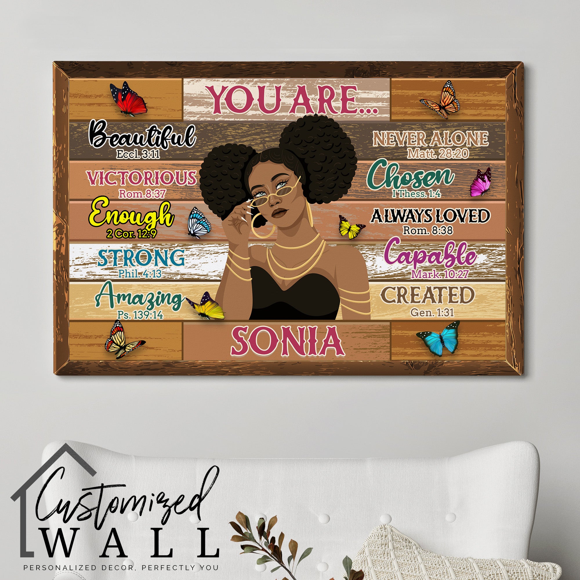 Bring inspiration and a personal touch to any space with this beautifully handcrafted Wrapped Canvas Wall Art. Designed with vivid colors and empowering messages, this piece features a unique blend of pastel hues and bold typography to highlight the affirmations inspired by scripture. The artwork is accentuated with graceful butterflies and a stylish illustration, providing both elegance and strength, making it a stunning addition to your home decor.