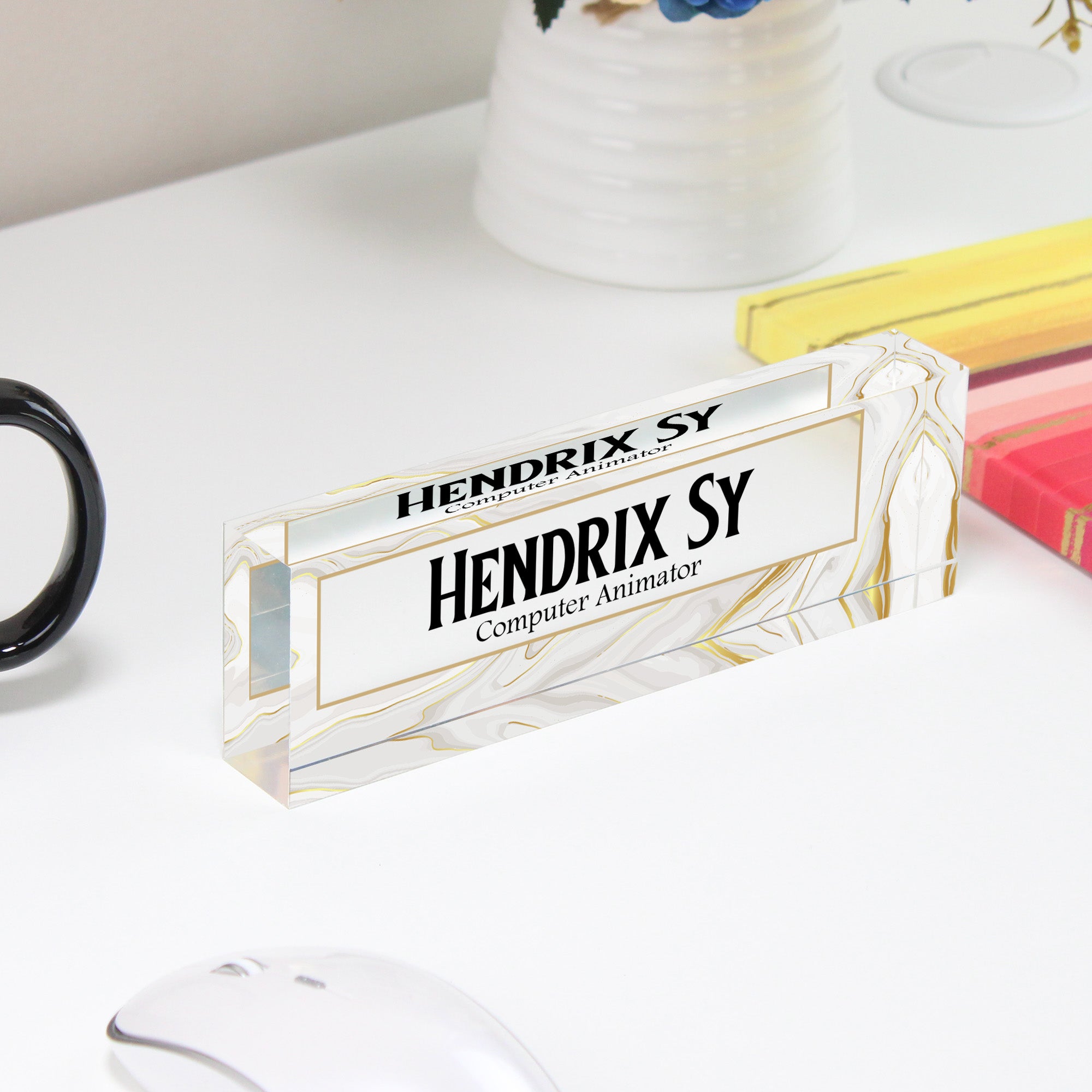 TAGS: personalized desk block, acrylic nameplate, computer animator gift, marble pattern decor, office accessories, custom nameplate, creative professional gifts, desk decor, handmade desk block, elegant office gifts, graduation gift, promotion gift, custom office sign, unique gift for animator, personalized office decor