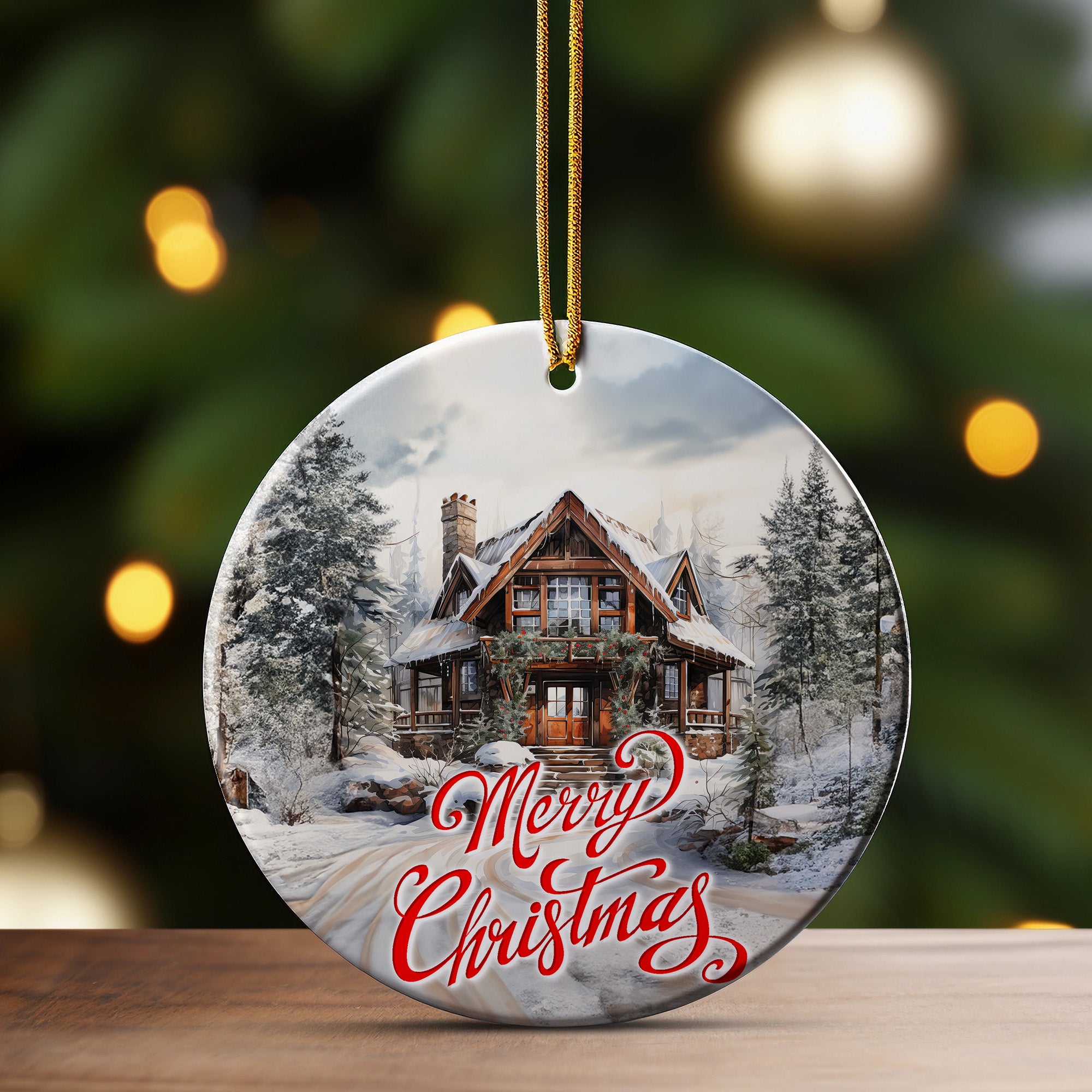 Embrace the warmth and joy of the holiday season with our beautifully crafted Merry Christmas Ceramic Ornament. This exquisite piece features a charming rustic cabin nestled in a serene, snowy forest, capturing the essence of a cozy winter wonderland. The vibrant colors and intricate details combine to create a festive masterpiece that will enhance any Christmas tree.