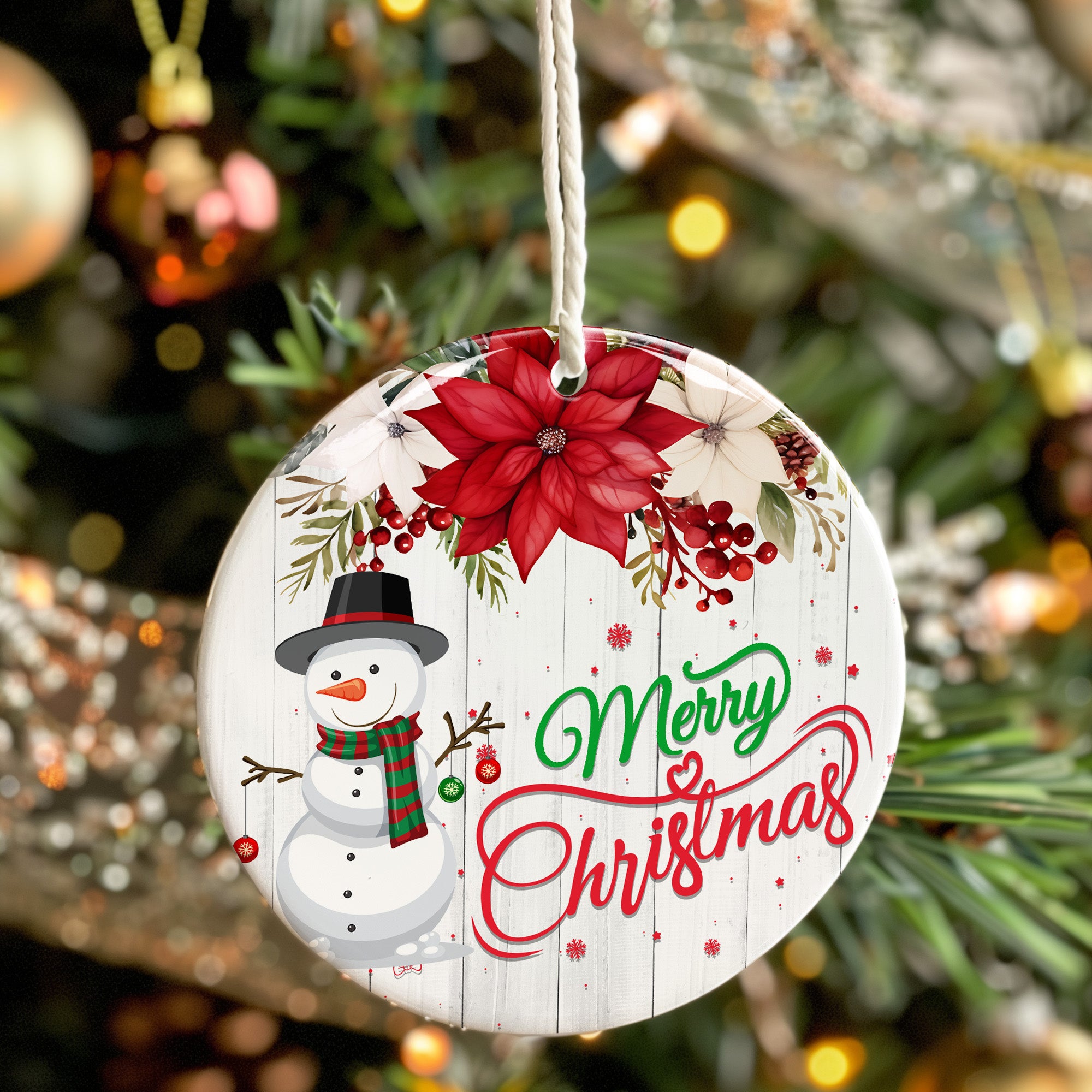 **TAGS:** Christmas ornament, personalized ornament, ceramic ornament, holiday decor, snowman design, poinsettia decor, Christmas tree decoration, personalized gift, custom ornament, holiday gift, festive decor, Christmas gift idea, family gift, gift for mom, gift for sister