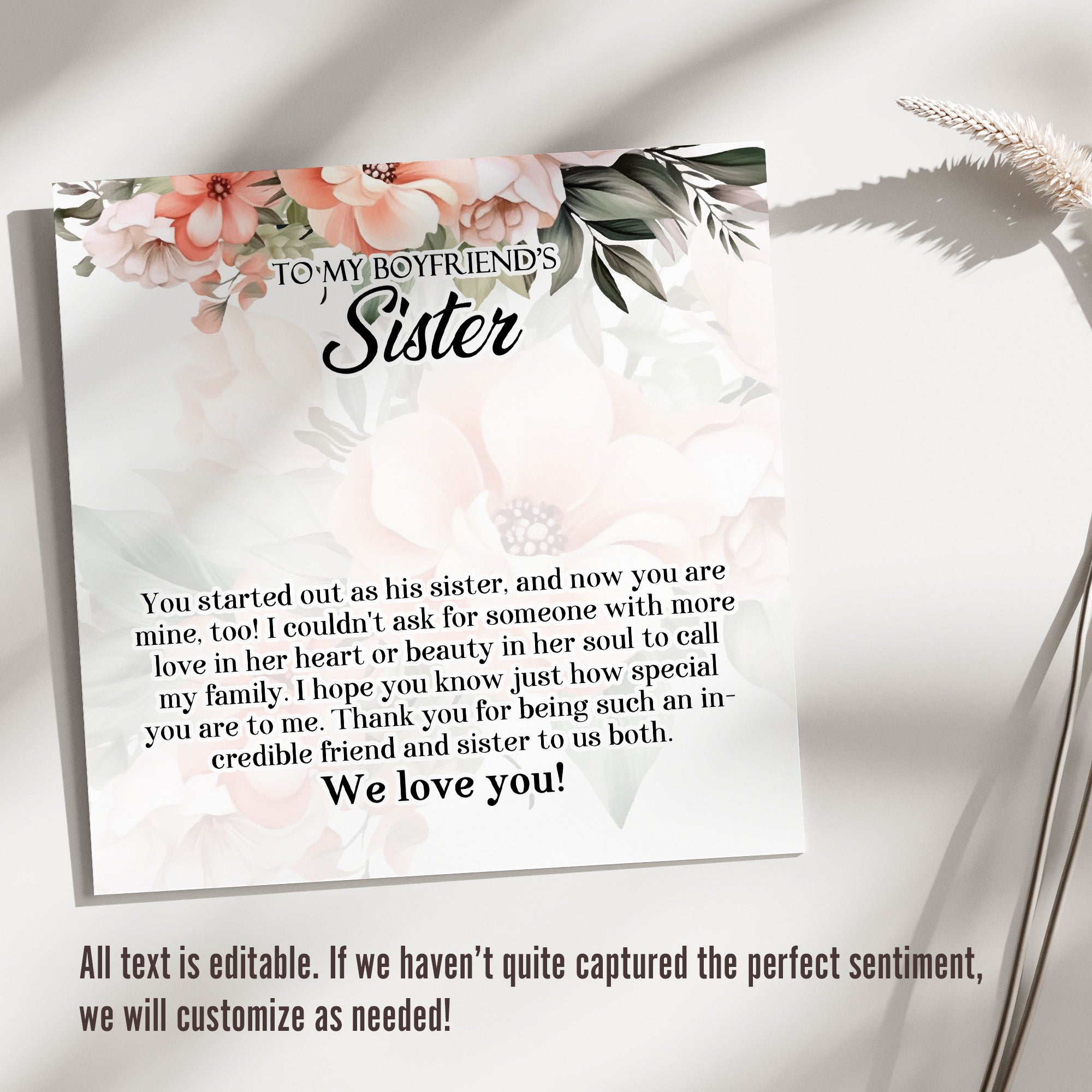 Perfect for birthdays, holidays, or simply to show your appreciation, this necklace makes a memorable gift. The accompanying heartfelt message, "To my Boyfriend's Sister," underlines your close relationship and gratitude for having her in your life.