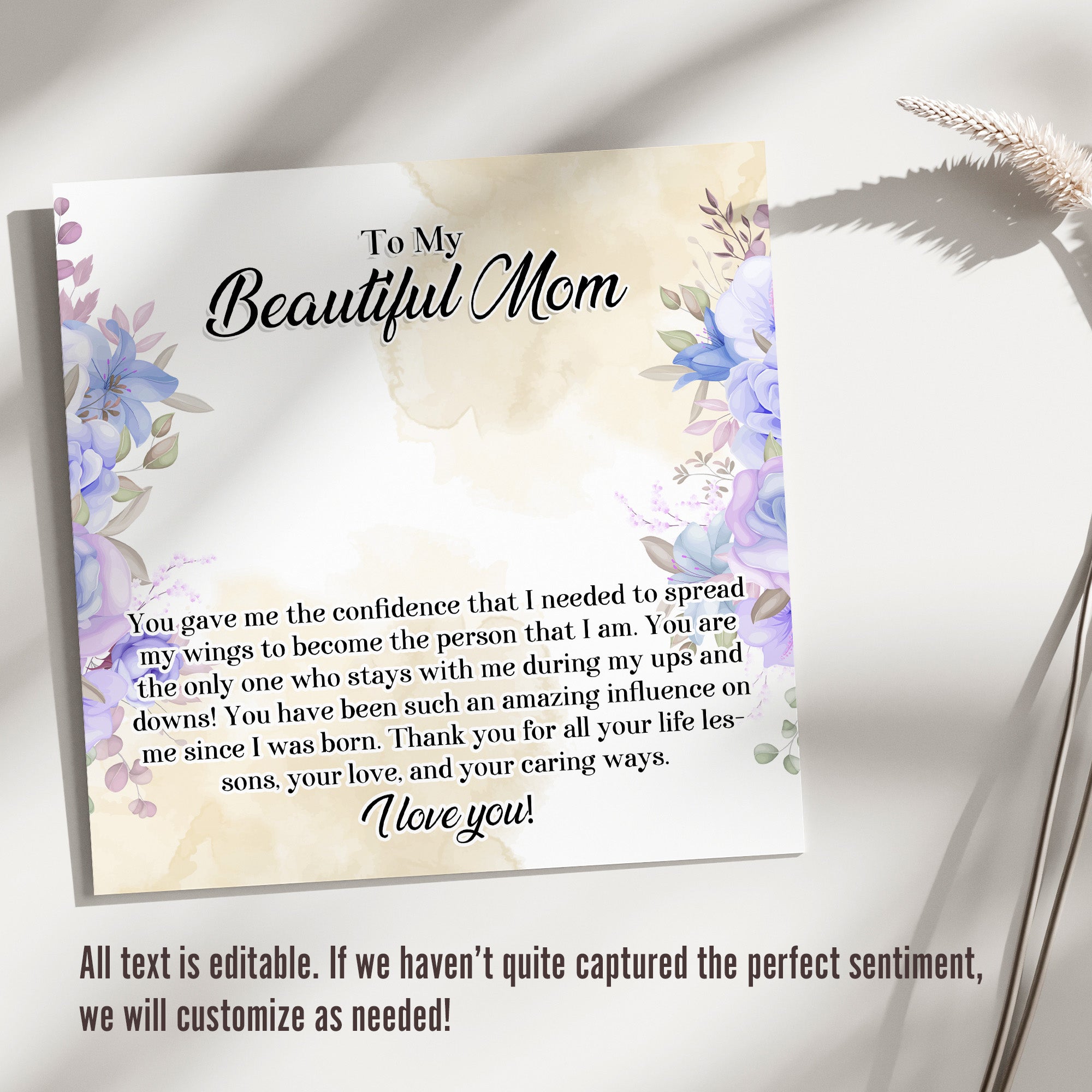 Each necklace comes in a charming gift box adorned with delicate floral patterns, accentuating its elegance and making it a memorable gift for any occasion. The included message card is adorned with heartfelt words, creating an emotional connection that will tug at the heartstrings of any mother. You can further personalize the card with your own message to make it truly unique.