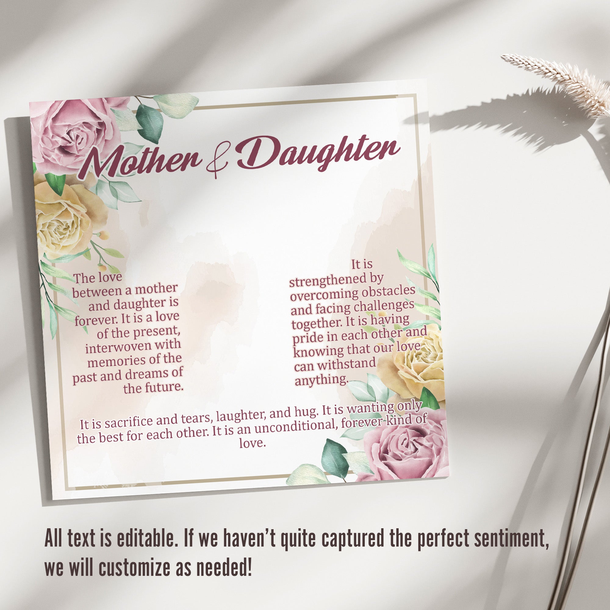 The message card, adorned with delicate floral patterns and soft hues of pinks and greens, beautifully complements the necklace. The card's heartfelt message speaks volumes of the unbreakable bond, pride, and unconditional love shared between a mother and daughter.