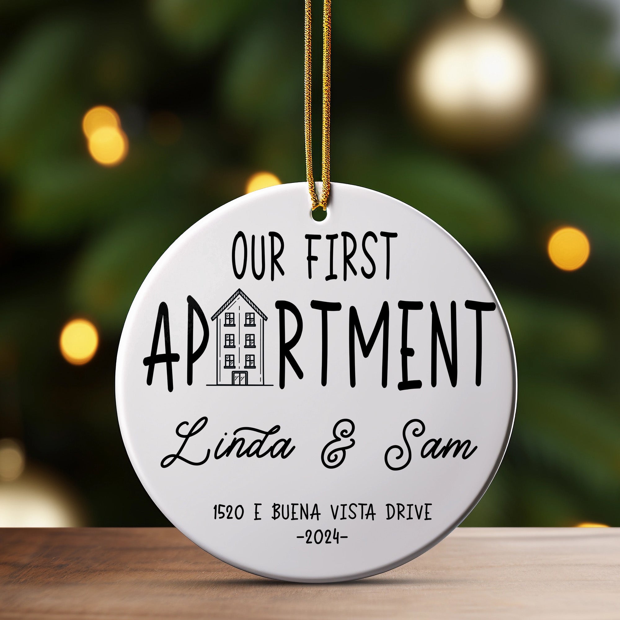 TAGS: personalized ornament, first apartment gift, ceramic ornament, custom home decor, new home keepsake, couple's gift, apartment decor, handmade ornament, personalized gift, custom ornament, housewarming gift, new homeowner, couple's ornament, Christmas ornament, gift for newlyweds