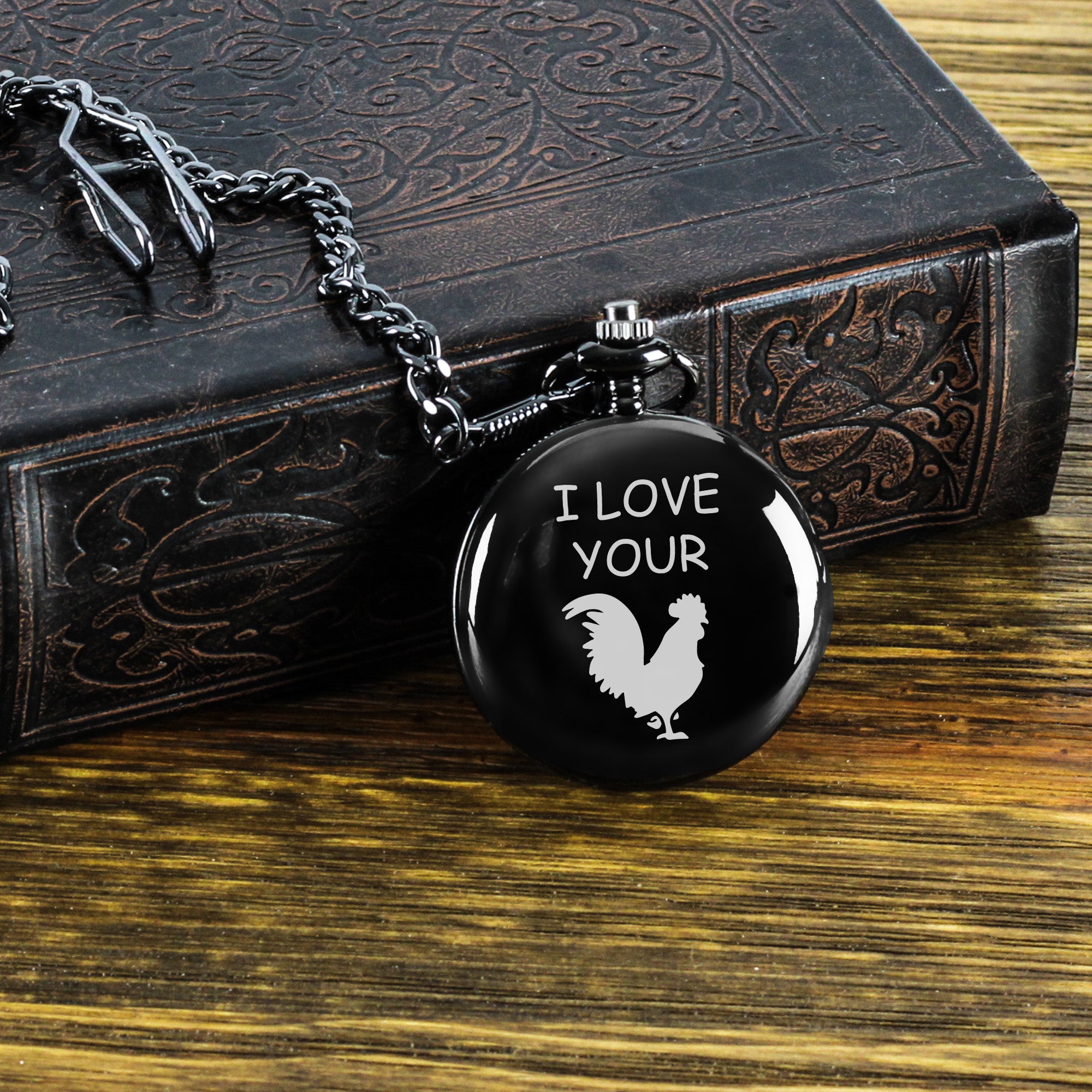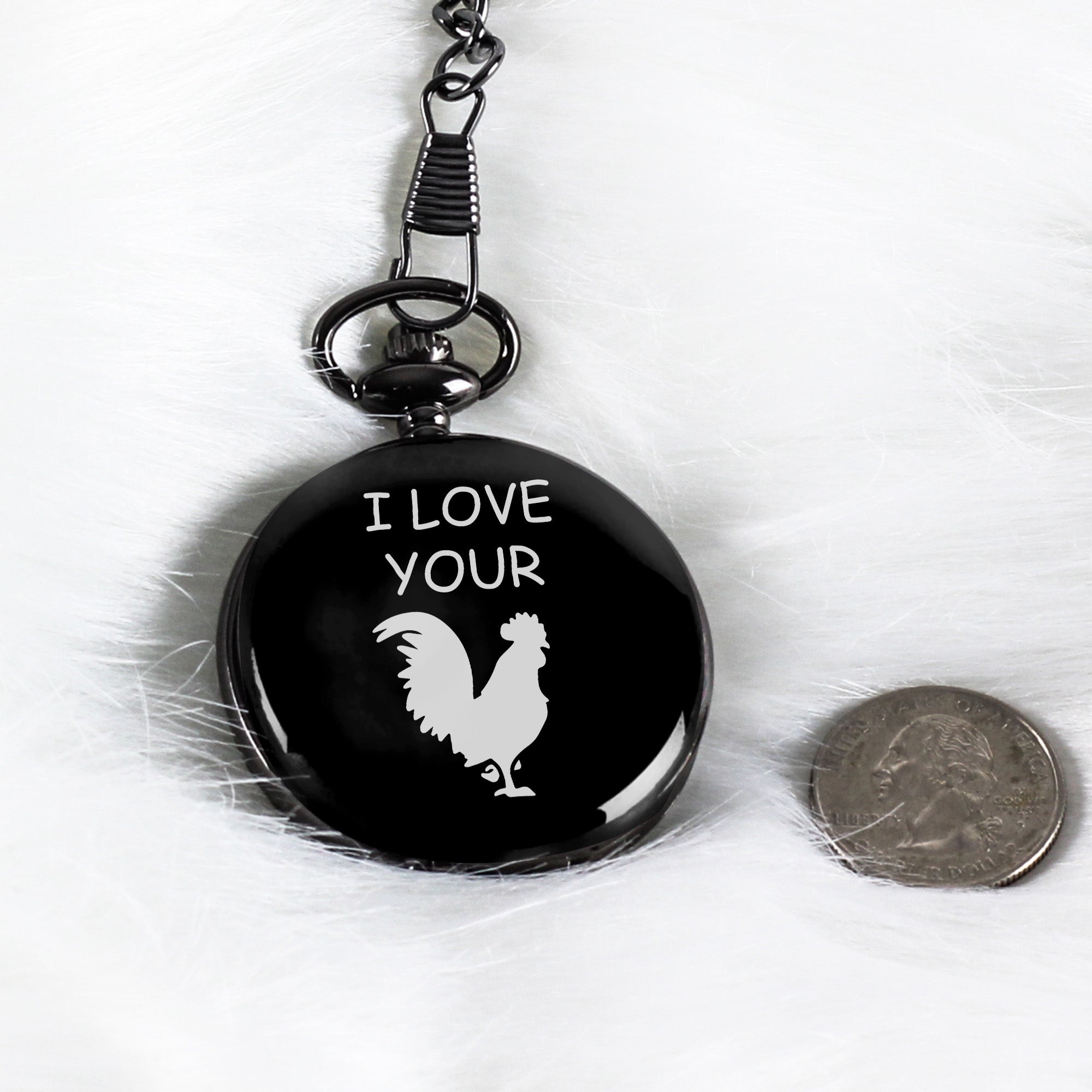 Discover the perfect blend of humor and elegance with our Personalized Pocket Watch featuring the cheeky "I Love Your" design, complete with a charming rooster silhouette. Crafted with meticulous attention to detail, this sleek watch is more than just a timepiece—it's a statement of appreciation and joy.