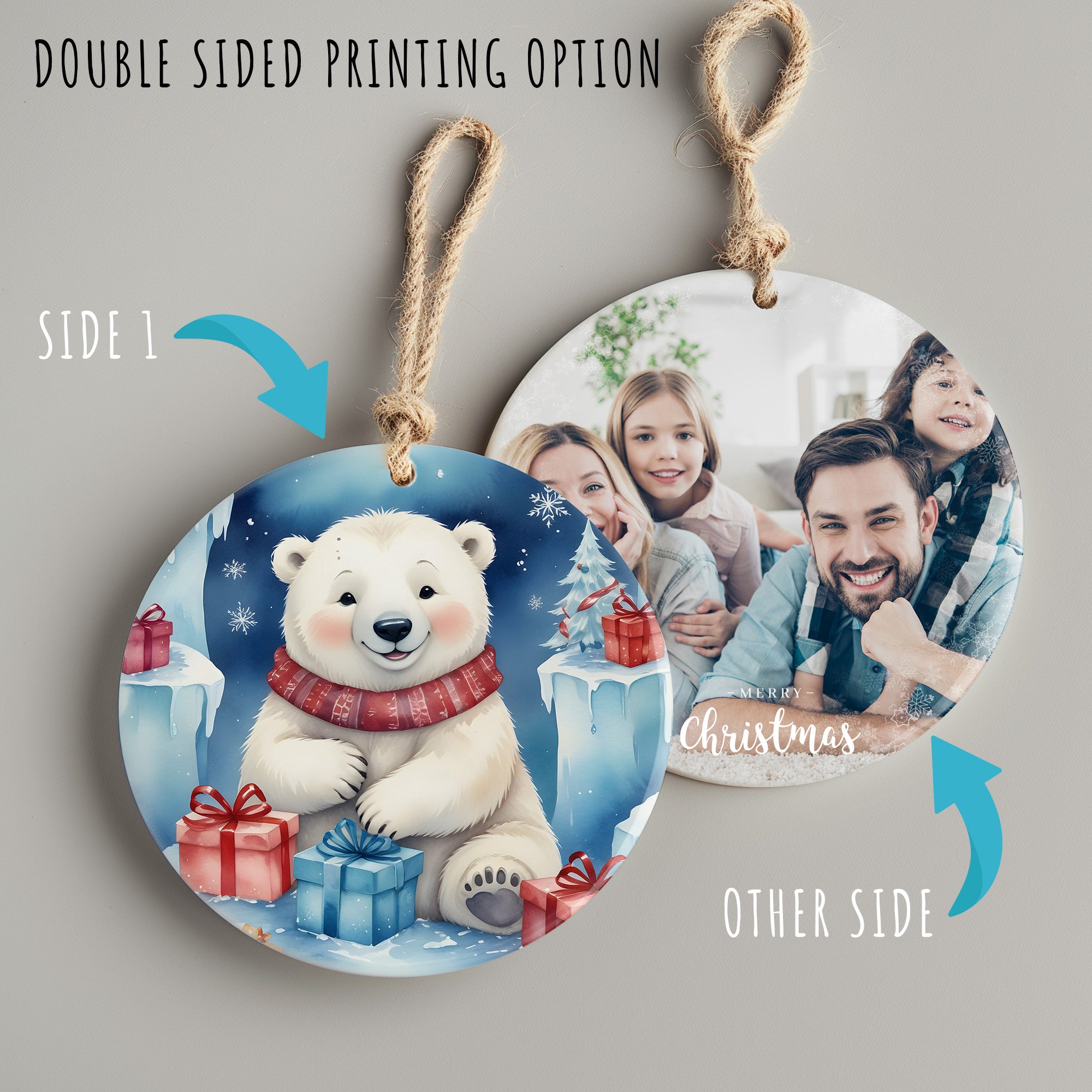 TAGS: personalized ornament, ceramic ornament, Christmas gift, polar bear decor, holiday decoration, custom ornament, handmade gift, winter wonderland, festive tree decor, gift for mom, gift for sister, gift for children, Christmas tree ornament, unique holiday gift, gift for teacher