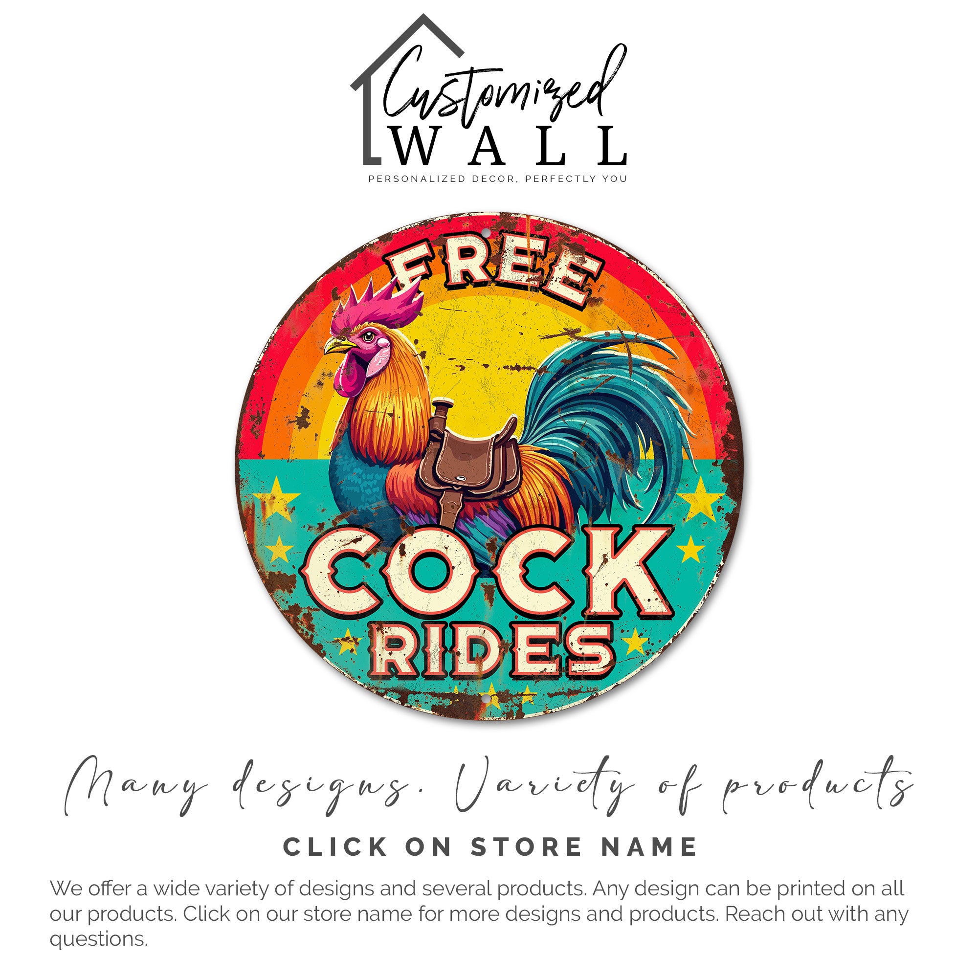 Elevate your farmhouse décor with our Personalized Retro Rooster Metal Sign, a vibrant blend of charm and humor. Crafted from high-quality metal, this round sign measures a perfect size to catch the eye, featuring a colorful rooster adorned with a cheeky phrase that lightens any room. Ideal for kitchens, patios, or home bars, the sign boasts rich hues of orange, teal, and yellow, beautifully set against a durable, rust-resistant surface.