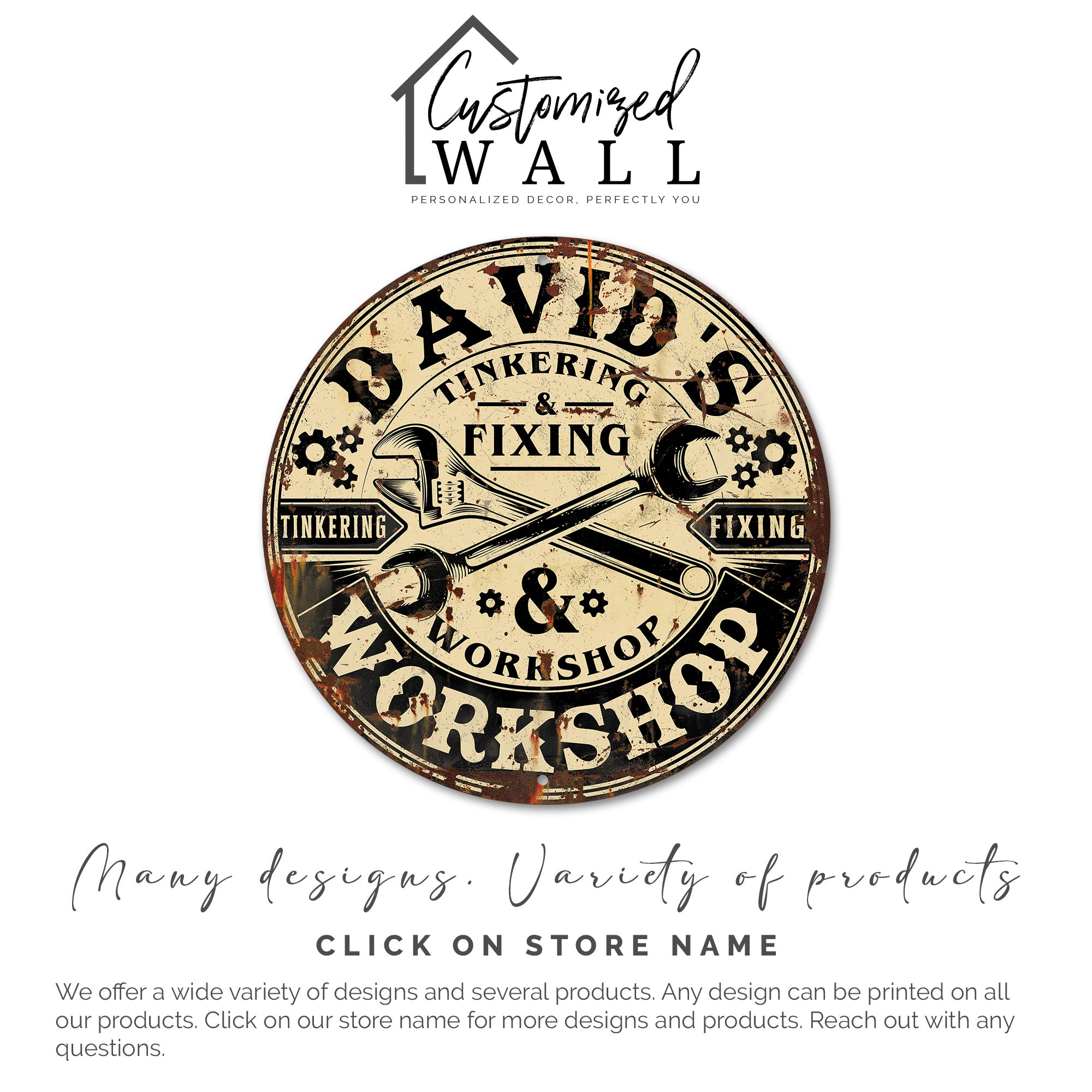 TAGS: personalized sign, workshop decor, custom metal sign, gift for dad, tinkering gift, handyman decor, Father's Day gift, man's cave sign, vintage metal sign, custom workshop sign, craftsman gift, hobbyist decor, fix-it gift, unique gift for him, home workshop decor