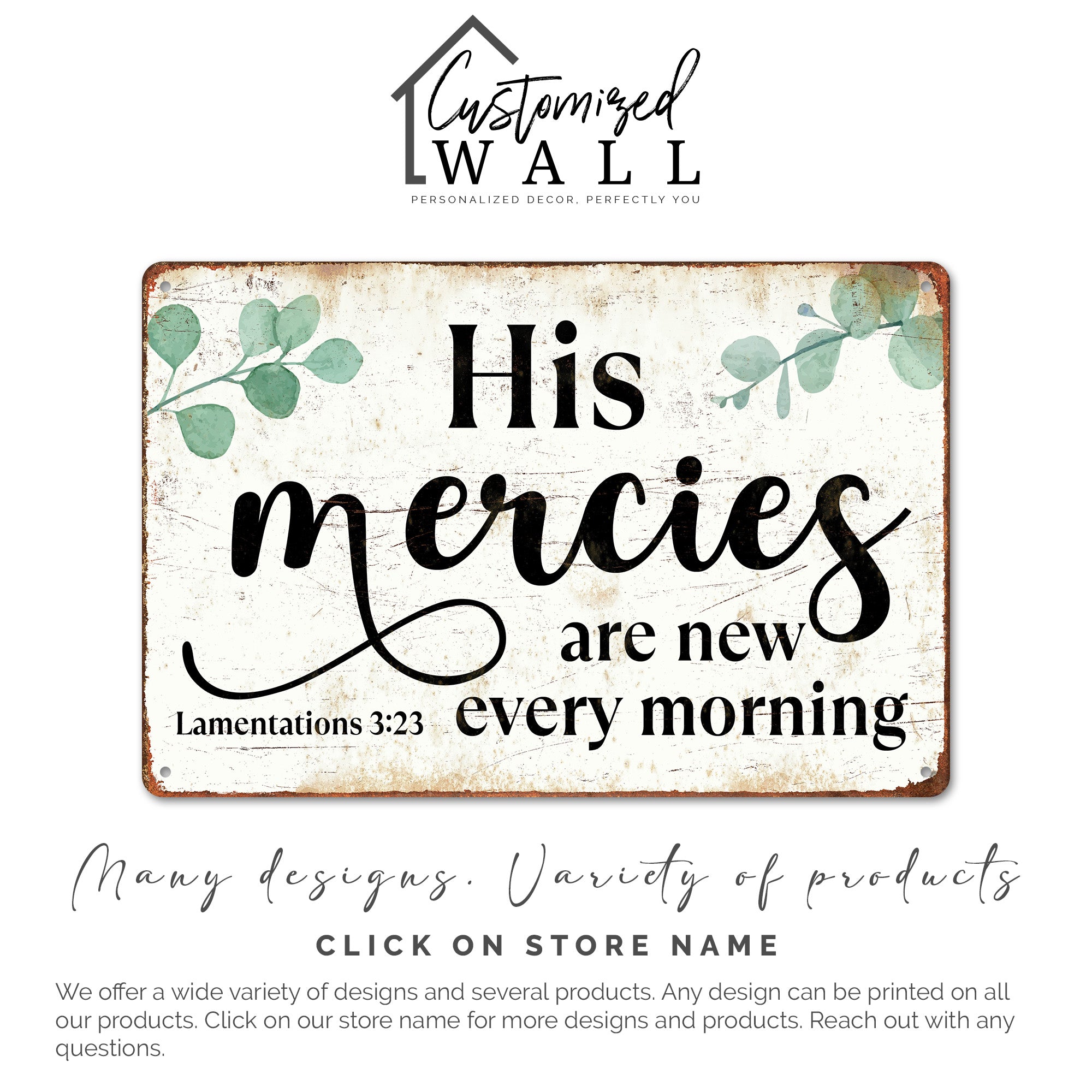 TAGS: personalized gifts, rustic decor, inspirational sign, Lamentations 3:23, Christian gifts, wall art, metal sign, gift for mom, custom wall decor, vintage home decor, inspirational wall art, religious gift, anniversary gift, birthday gift, home blessing