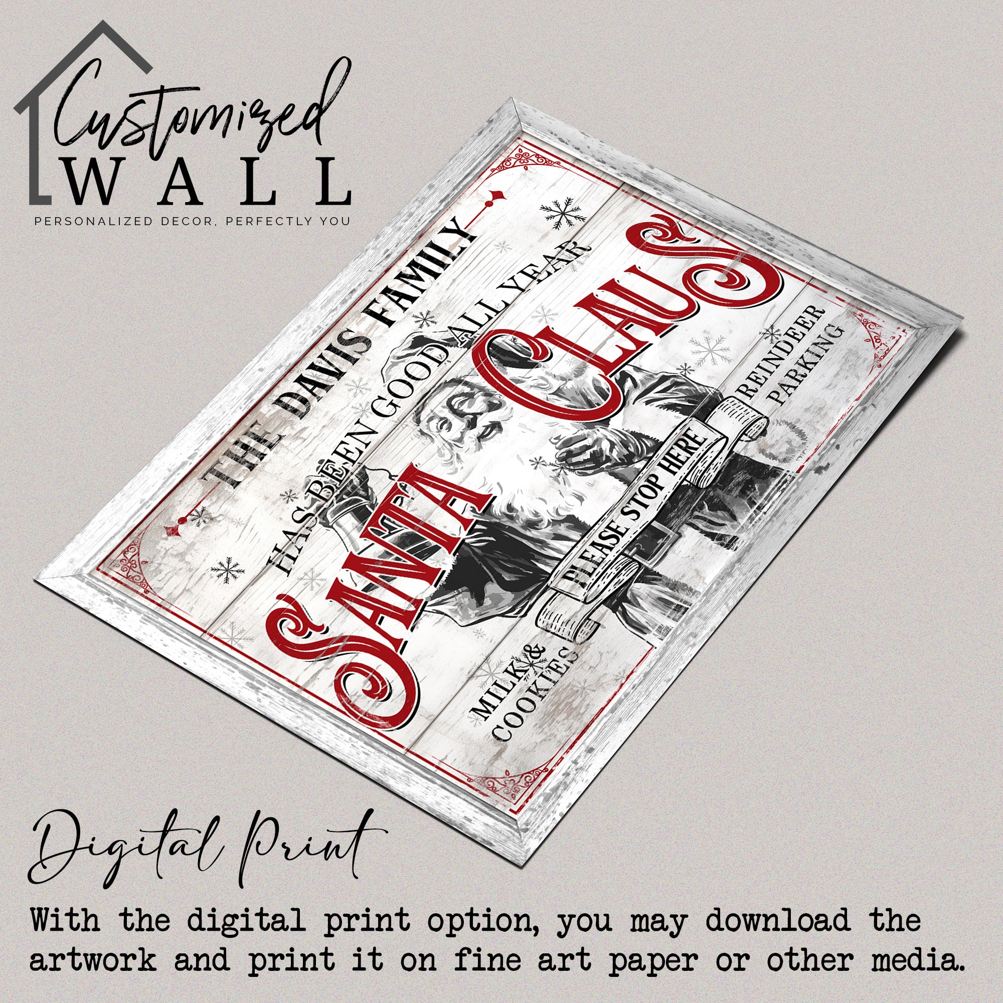 Customize this canvas with your family's name to create a truly unique and heartwarming holiday decoration. Perfect for welcoming Santa with a hint of festive flair, the sign reads "The Davis Family Has Been Good All Year - Santa Claus Please Stop Here." Make it your own by adding your family name, and watch as it becomes a cherished part of your holiday traditions.