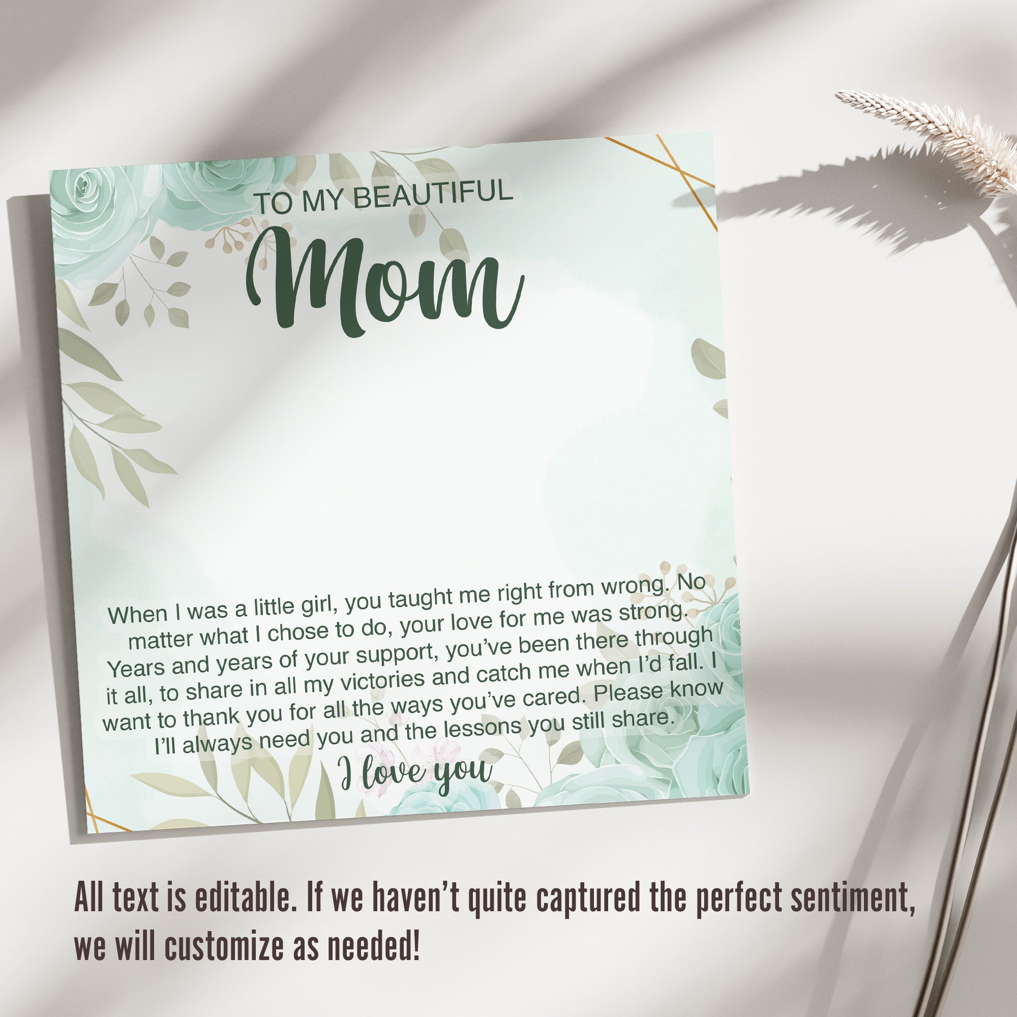 This thoughtful message can be personalized with your own words to add a unique touch that will resonate deeply with your mom, making it a cherished keepsake.