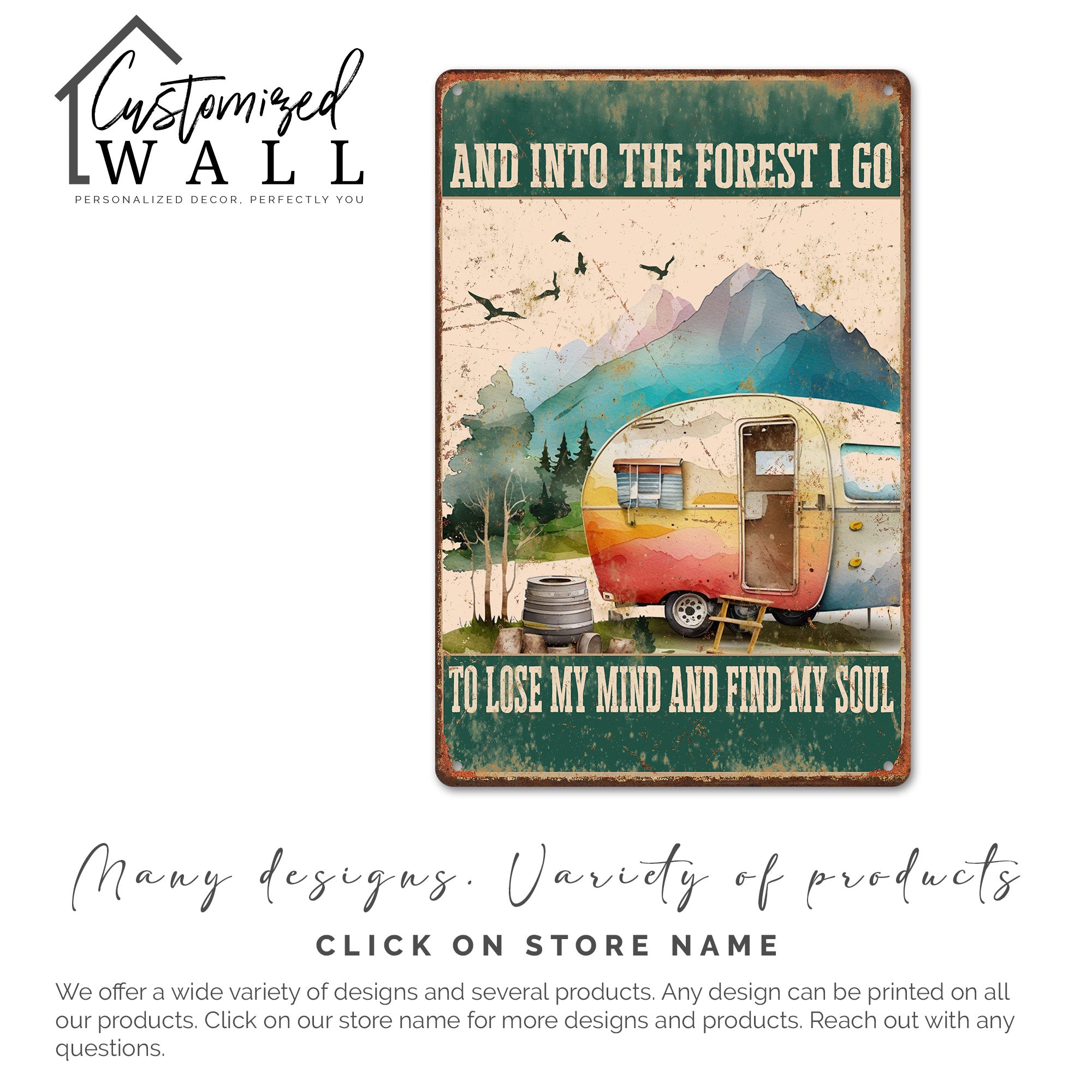 TAGS: personalized metal sign, camper decor, nature lover gift, vintage camper, rustic wall art, adventure quote, forest decor, wanderlust gift, nature enthusiast, custom home decor, camping gift, wilderness sign, retro travel decor, bohemian style, gifts for mom