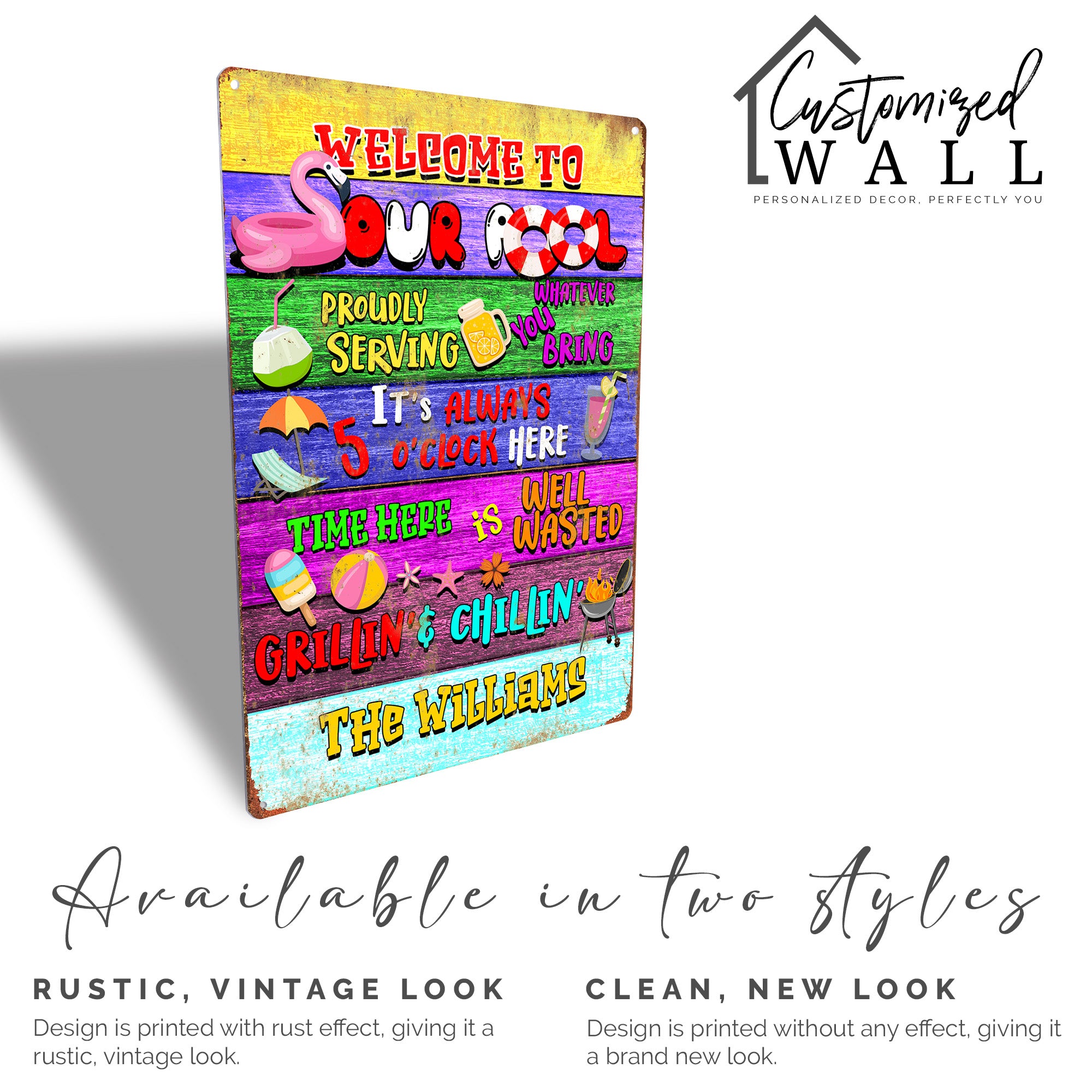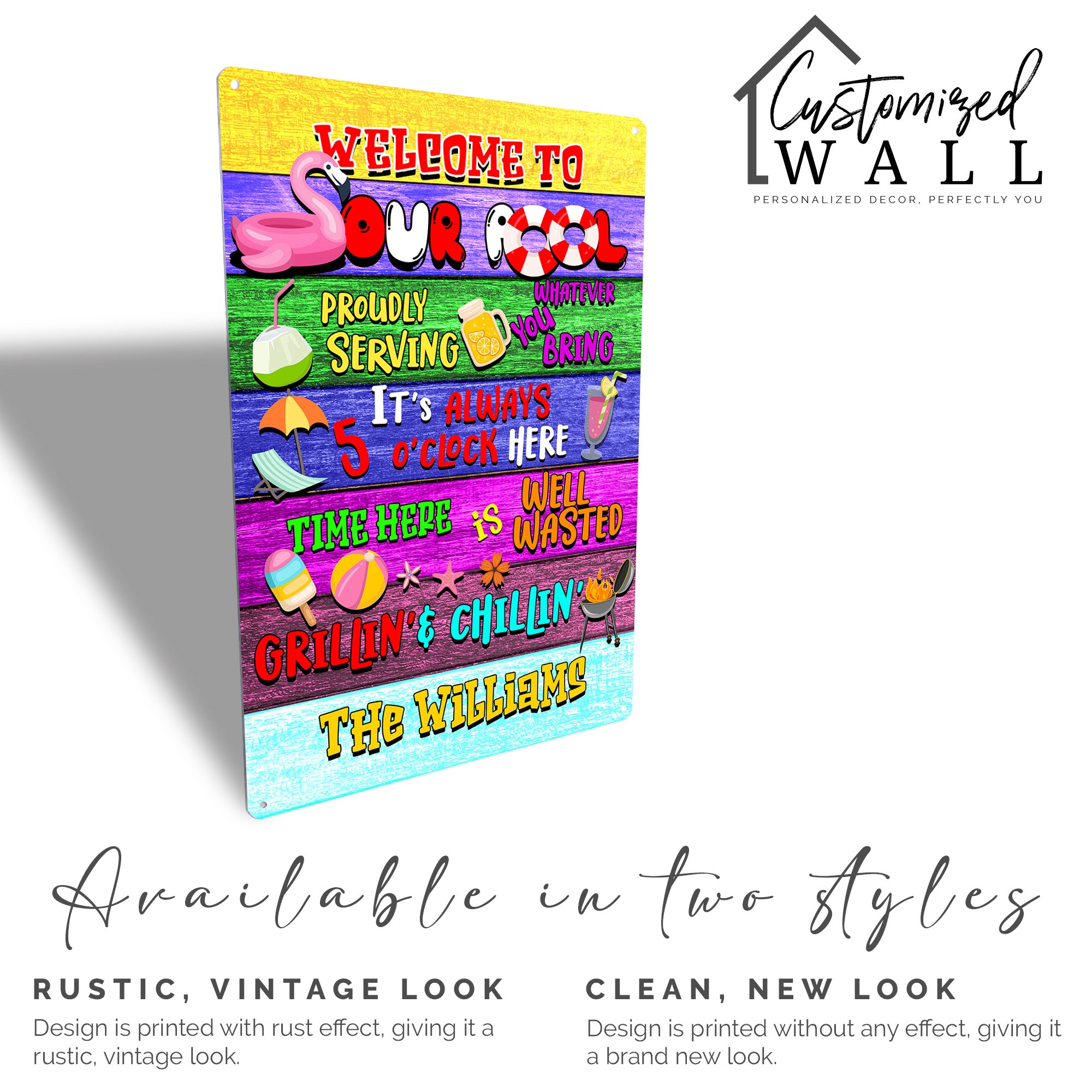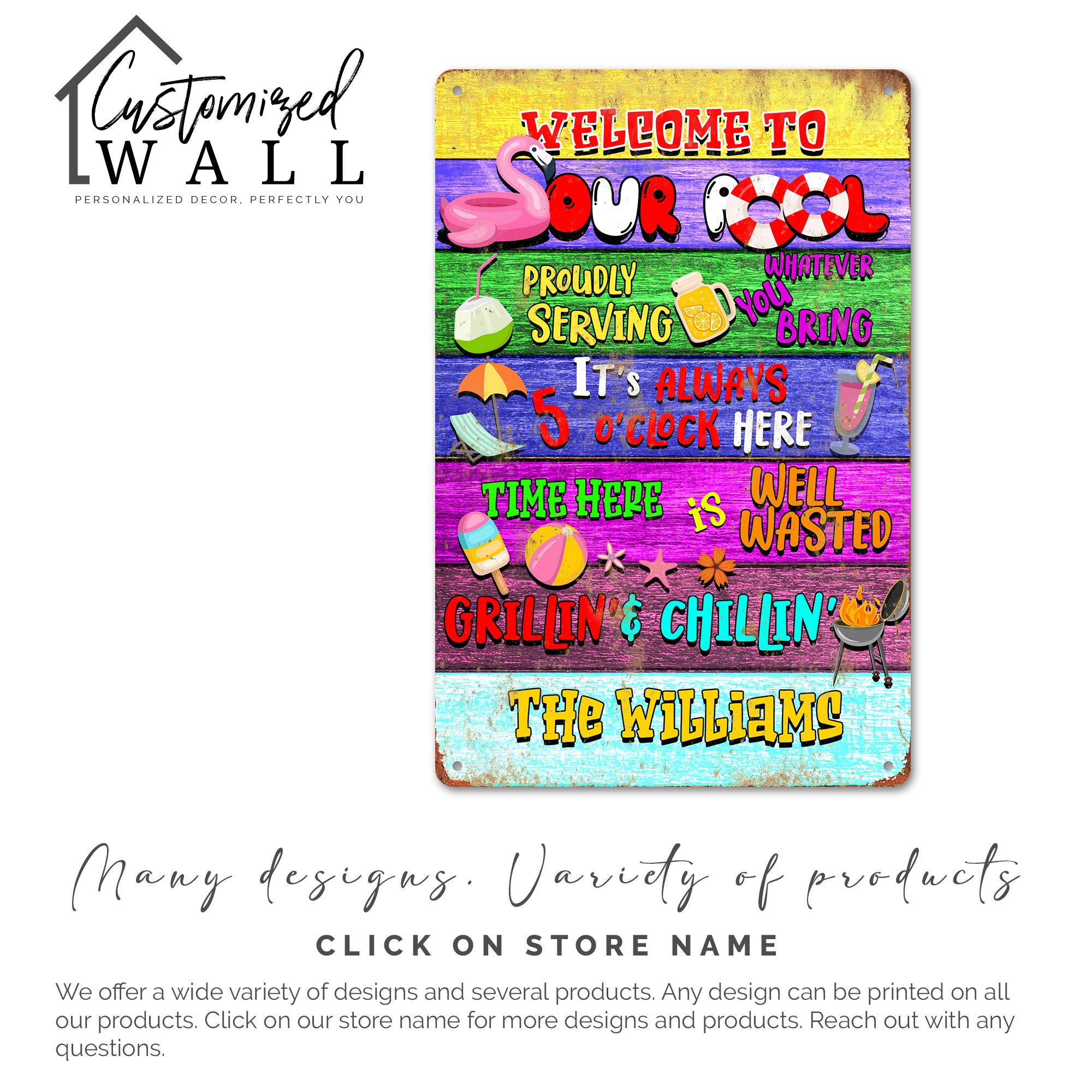 TAGS: personalized pool sign, custom metal sign, backyard decor, patio decoration, grillin' and chillin' sign, family name sign, pool party decor, summer gift, housewarming present, outdoor sign, colorful metal sign, handmade pool decor, family gift, custom patio sign, beach house gift