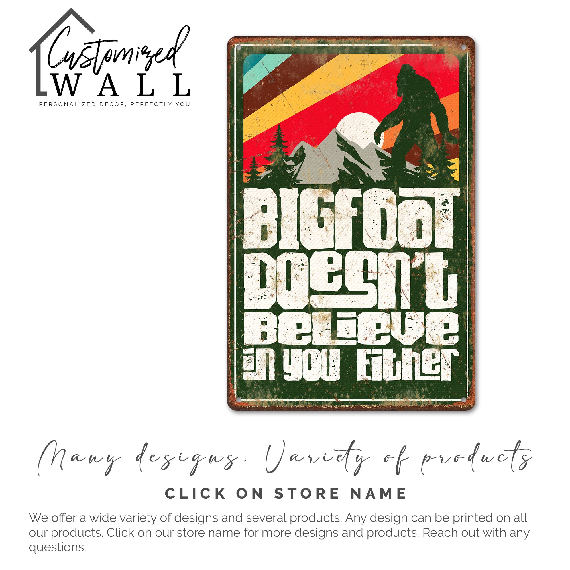 TAGS: Bigfoot sign, Sasquatch decor, personalized metal sign, retro wall art, cryptid lover gift, funny home decor, custom sign, cabin decor, gift for him, gift for her, rustic home decor, quirky wall art, handmade sign, man cave decor, unique gift